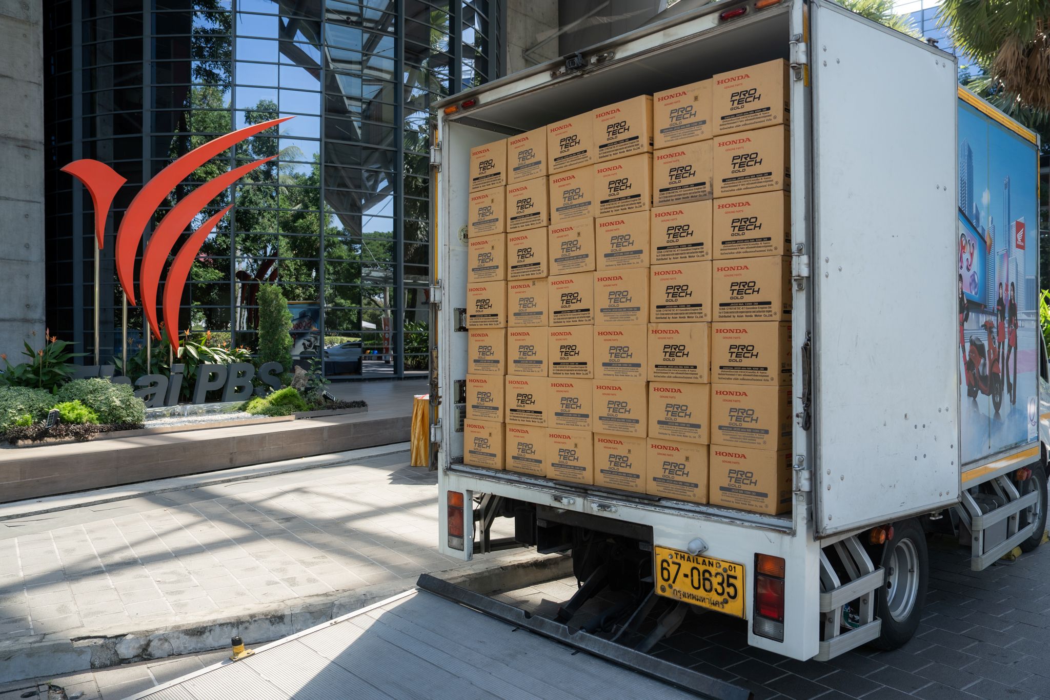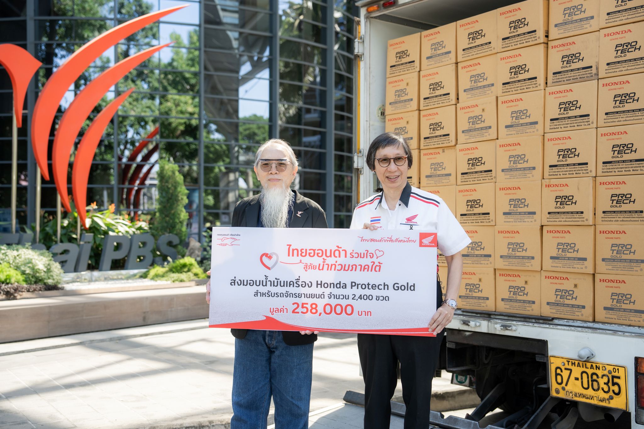 บริษัท ไทยฮอนด้า จำกัด ผู้ผลิตและจัดจำหน่ายรถจักรยานยนต์ และเครื่องยนต์อเนกประสงค์ฮอนด้าในประเทศไทย ร่วมกับ ไทยพีบีเอส ส่งมอบน้ำมันเครื่อง Honda Protech Gold สำหรับรถจักรยานยนต์ จำนวน 2,400 ขวด มูลค่ารวม 258,000 บาท เพื่อนำไปส่งมอบให้ศูนย์ซ่อมสร้างเพื่อชุมชน หรือ Fix it Center ที่สำนักงานคณะกรรมการอาชีวศึกษา วิทยาลัยเทคนิคหาดใหญ่ ที่จัดตั้งขึ้นเพื่อซ่อมรถจักรยานยนต์ และเครื่องใช้ไฟฟ้าที่ได้รับความเสียหายจากเหตุการณ์น้ำท่วมที่ภาคใต้ โดยไม่คิดค่าใช้จ่าย