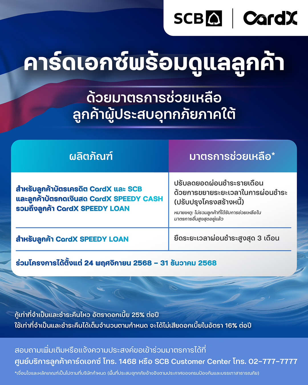 โครงการ “ตั้งหลัก 90 วัน” เปิดโอกาสให้ลูกค้าบุคคลธรรมดาที่อาศัยอยู่ในพื้นที่ประสบเหตุอุทกภัย