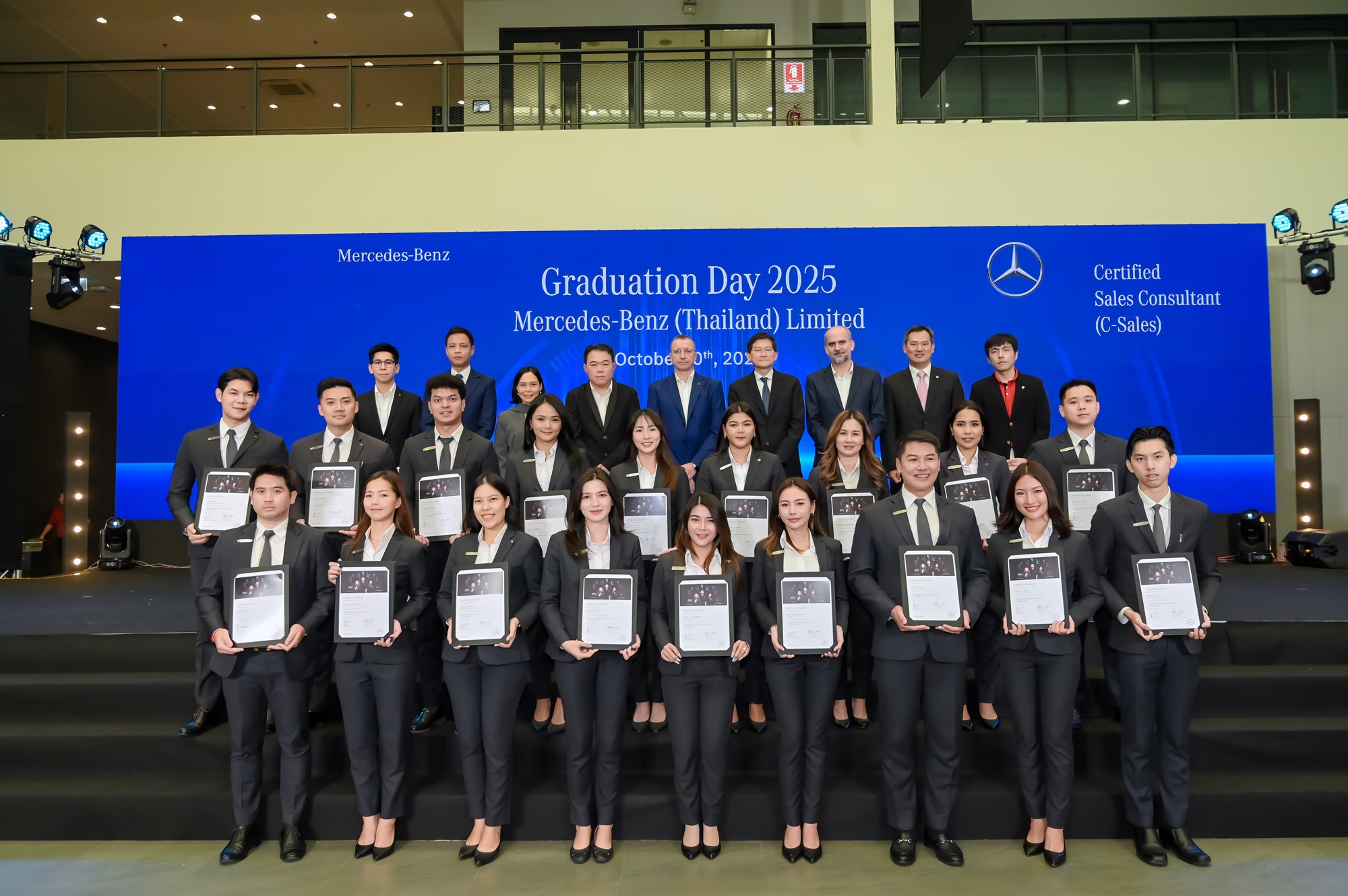 บริษัท เมอร์เซเดส-เบนซ์ (ประเทศไทย) จำกัด จัดงานวันสำเร็จการศึกษาและมอบประกาศนียบัตรให้แก่นักศึกษาช่างฝึกหัดจำนวน 25 คน ที่สำเร็จการศึกษาโครงการฝึกงานนักเรียนช่างฝึกหัดแบบทวิภาคี ในสาขาวิชาช่างเทคนิคยานยนต์เมคคาทรอนิกส์
