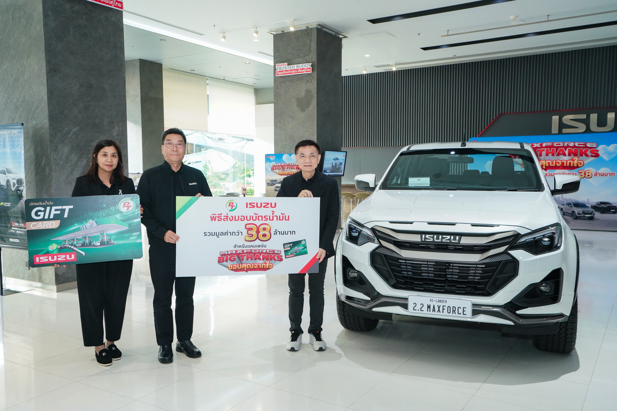 แคมเปญ “MAXFORCE BIG THANKS ขอบคุณจากใจ” สำหรับผู้ที่ซื้อ และรับรถอีซูซุดีแมคซ์ หรือรถยนต์นั่งอเนกประสงค์มิว-เอ็กซ์ ทุกรุ่น จากโชว์รูมอีซูซุทั่วประเทศ ระหว่างวันที่ 25 ตุลาคม – 30 ธันวาคม 2568 จะได้รับสิทธิ์ลุ้นบัตรเติมน้ำมัน PT รวม 1,907 รางวัล มูลค่ารวมกว่า 38,700,900 บาท โดยมีการจับรางวัลทั้งหมด 9 ครั้ง และประกาศผลผ่านทางเฟซบุ๊กเพจ All-New ISUZU D-MAX และ All-New ISUZU MU-X รวมถึงช่องทางผู้จำหน่ายอีซูซุทั่วประเทศ
