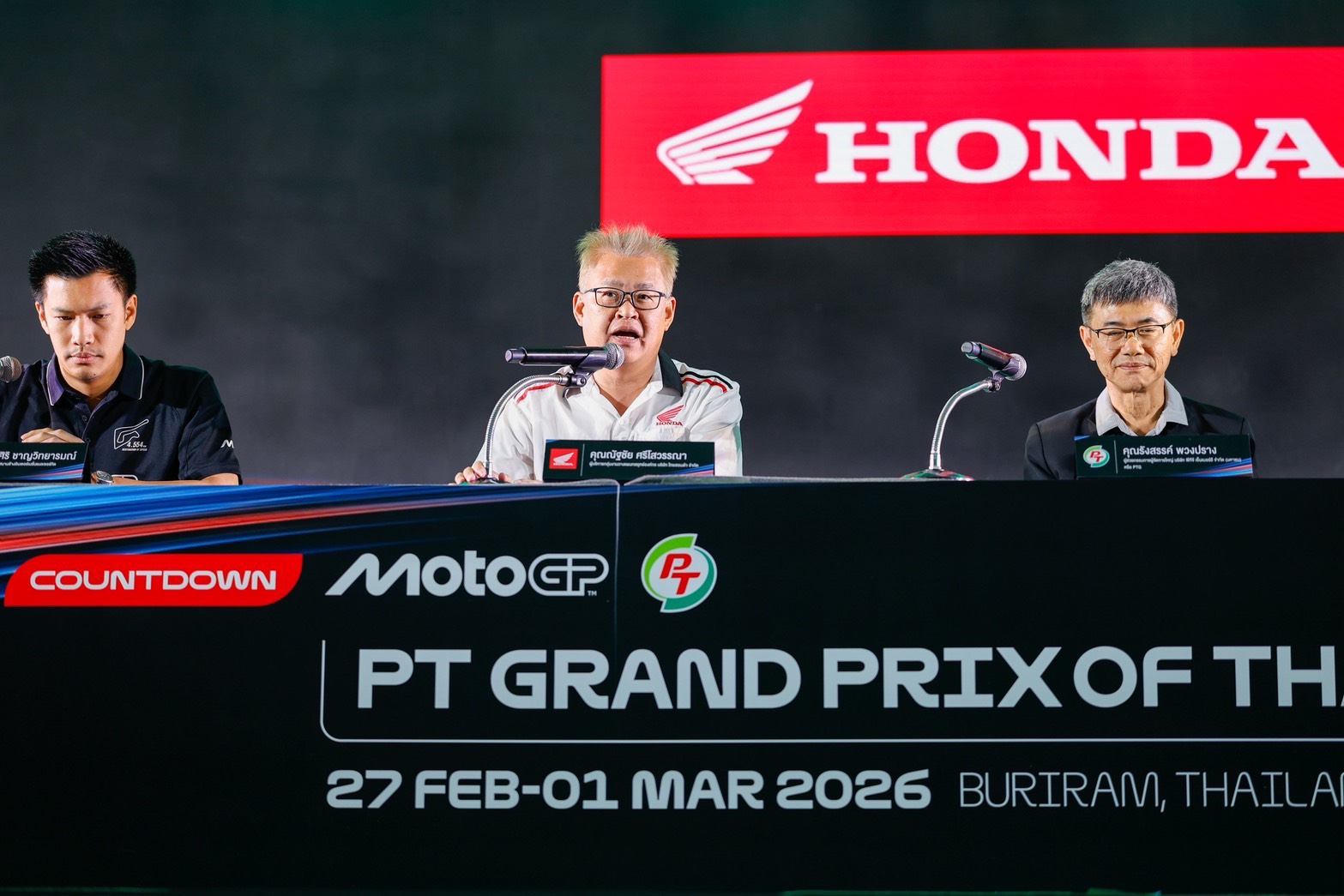 "ไทยฮอนด้า" ร่วมงานแถลงข่าวการนับถอยหลังสู่การแข่งขันรถจักรยานยนต์ทางเรียบชิงแชมป์โลก โมโตจีพี 2026 ในรายการ "PT Grand Prix of Thailand 2026” (พีที กรังด์ปรีซ์ ออฟ ไทยแลนด์) ในศึกการแข่งขันระดับโลกที่ สนามช้าง อินเตอร์เนชั่นแนล เซอร์กิต จ.บุรีรัมย์ ระหว่างวันที่ 27 กุมภาพันธ์-1 มีนาคม 2569 พร้อมเชิญชวนแฟนชาวมอเตอร์สปอร์ต ร่วมเปิดประสบการณ์ความมันส์ระดับโลกไปด้วยกัน เมื่อวันพฤหัสบดีที่ 8 มกราคม 2569 ที่ผ่านมา ณ สโมสรราชพฤกษ์