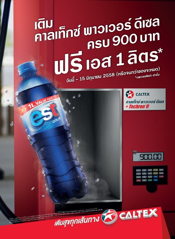 บริษัท เชฟรอน (ไทย) จำกัด ผู้ผลิตและจำหน่ายผลิตภัณฑ์คาลเท็กซ์ จัดโปรโมชั่นคลายร้อนต้อนรับซัมเมอร์ เอาใจลูกค้าสถานีบริการน้ำมันคาลเท็กซ์ ภายใต้แนวคิด “เติมสุขทุกเส้นทางที่คาลเท็กซ์” เพียงเติมน้ำมันคาลเท็กซ์ พาวเวอร์ ดีเซล ครบทุก 900 บาท รับฟรีทันที น้ำอัดลม เอส โคล่า ขนาด 1 ลิตร ตั้งแต่วันนี้ -15 มิถุนายนนี้ หรือ