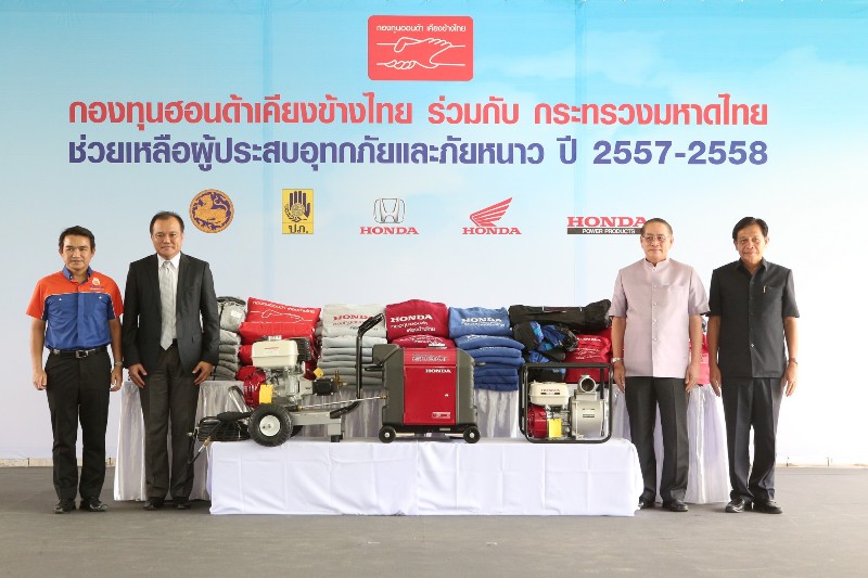 กองทุนฮอนด้าเคียงข้างไทย ร่วมกับกระทรวงมหาดไทย และกรมป้องกันและบรรเทาสาธารณภัย เปิดตัวโครงการ "กองทุนฮอนด้าเคียงข้างไทย และกระทรวงมหาดไทย ช่วยเหลือ ผู้ประสบอุทกภัยและภัยหนาว ปี 2557-2558" เพื่อสานต่อภารกิจการให้ความช่วยเหลือประชาชนชาวไทย ในยามประสบภัยพิบัติทางธรรมชาติ โดยการนี้ กองทุนฮอนด้าเคียงข้างไทยได้ส