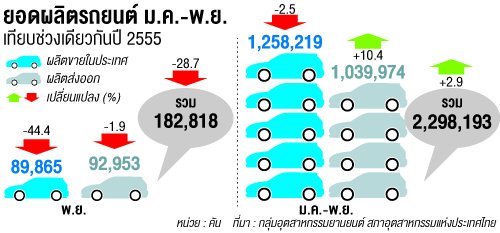 ปริมาณการจำหน่ายรถยนต์เดือนธันวาคม 2555