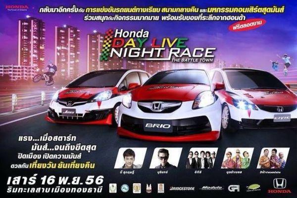 บริษัท ฮอนด้า ออโตโมบิล (ประเทศไทย) จำกัด ร่วมกับ บริษัท กรังด์ปรีซ์ อินเตอร์เนชั่นแนล จำกัด และบริษัท เฟรชแอร์ เฟสติวัล จำกัด จัดงาน Honda Day Live Night Race: The Battle Town ที่แรกและท