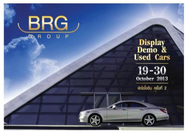 BRG รวมพลยนตกรรมระดับหรู มาพร้อมราคาที่น่าเร้าใจ จัดงาน Display Demo and Used car Day ครั้งที่ 2 ประจำปี 2013 นำรถยนต์ DEMO, DISPLAY ชั้นนำทั้งจากยุโรปและญี่ปุ่น และUsed car คุณภาพสูงจาก BRG A-plus มากกว่า 12 ยี่ห้อ กว่า 40รุ่น ให้เป็นเจ้าของแล้ว ตั้งวันที่ 19 ถึง 30 ตุลาคม 2556 นี้ ที่โชว์รูม BRG รัชโยธิน