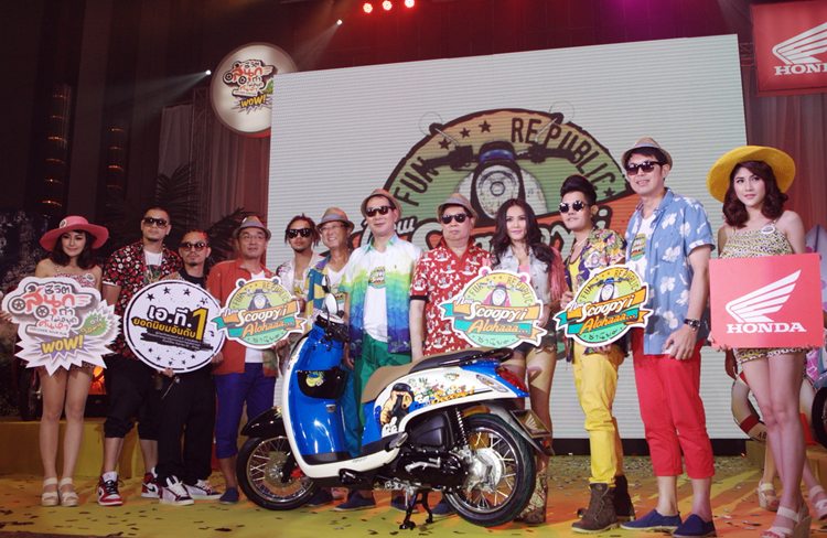 ค่ายรถจักรยานยนต์ฮอนด้า เปิดตัวนิวฮอนด้า สกู๊ปปี้ไอ อโลฮ่า ซ่านิยม ถ่ายทอดความสนุกตามสไตล์สาธารณรัฐซ่าลาพักร้อน ลงบนตัวรถด้วยกราฟฟิกซี.เอ็ม.วาย.เค (CMYK) เสมือนจริงเป็นครั้งแรกของวงการรถจักรยานยนต์ไทย พร้อมดึง “กิ๊บซี่ เกิร์ลลี่เบอร์รี่” และ “เก่ง เดอะวอยซ์” เสริมทัพพรีเซนเตอร์