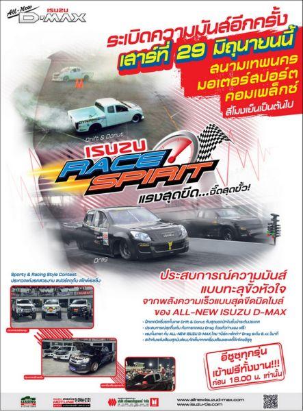 อีซูซุตอกย้ำความแรงของมอเตอร์สปอร์ต เอาใจแฟนดีแมคซ์ จัดงาน “Isuzu Race Spirit ครั้งที่ 2” ระเบิดความมัน! รวมพลผู้ใช้รถปิกอัพ “อีซูซุดีแมคซ์” ทุกรุ่น! เตรียมจัดหนัก อัดแน่นทุกกิจกรรมแรงสุดขีด...จี๊ดสุดขั้วในแบบฉบับของอีซูซุ ที่แฟนตัวจริง...ห้ามพลาด! ณ สนามเทพนคร มอเตอร์สปอร์ต คอมเพล็คซ์ เสาร์ที่ 29 มิถุนายน ศกนี้ ตั้งแต่เวลา 4 โมงเย็นเป็นต้นไป คุณปนัดดา เจณณวาสิน รองกรรมการผู้จัดการอาวุโส บริษัท ตรีเพชรอีซูซุเซลส์ จำกัด กล่าวว่า “อีซูซุได้เตรียมจัดกิจกรรมเอาใจแฟนๆ มอเตอร์สปอร์ต อีกครั้ง ด้วยงาน Isuzu Race Spirit ครั้งที่ 2 ณ สนามเทพนคร มอเตอร์สปอร์ต คอมเพล็คซ์ โดยครั้งนี้อีซูซุได้เน้นความสนุกตื่นเต้น เร้าใจในโซนกิจกรรมต่างๆ ทั้งนี้ยังได้เชิญคุณบอย – ขจรศักดิ์ ณ สงขลา นักแข่งรถชื่อดัง มาร่วมโชว์การดริ๊ฟท์ (Drift) พร้อมเปิดโอกาสให้ผู้ใช้รถปิกอัพอีซูซุดีแมคซ์ได้สัมผัสประสบการณ์การแข่งรถ (Drag Racing) ด้วยตัวเอง นอกจากนี้ยังได้เพิ่มพื้นที่การประกวดแต่งรถปิกอัพอีซูซุในคอนเซ็ปสปอร์ตยกสูง และสตรีทเรซซิ่ง เพื่อเปิดโอกาสให้ลูกค้าที่ชื่นชอบการแต่งรถได้เข้าร่วมกิจกรรมได้อย่างเต็มที่ พร้อมพิสูจน์สุดยอดปิกอัพออล-นิว อีซูซุ ดีแมคซ์ ของ “ช่างเบิร์ด หลัก 5” กับรถปิกอัพสี่สูบดีเซลที่สามารถทำความเร็วในการแข่ง Dragได้เร็วที่สุดในโลก กับสถิติเพียง 8 วินาทีกว่า โดยยังได้รับการสนับสนุนจากผลิตภัณฑ์ชั้นนำคุณภาพร่วมออกบูธเพื่อสร้างสีสันในงานครั้งนี้อย่างคับคั่ง ซึ่งอีซูซุขอเรียนเชิญผู้สนใจเข้าร่วมงาน Isuzu Race Spirit ได้ในวันเสาร์ที่ 29 มิถุนายน ศกนี้ และพิเศษสำหรับผู้ใช้รถอีซูซุทุกรุ่น เข้าร่วมกิจกรรมฟรีอีกด้วย” กิจกรรม “Isuzu Race Spirit” ครั้งที่ 2 จะจัดขึ้น ณ สนามเทพนคร มอเตอร์สปอร์ต คอมเพล็คซ์ ในวันเสาร์ที่ 29 มิถุนายนนี้... เปิดให้ลงทะเบียนความสนุกได้ตั้งแต่เวลา 16.00 น. และพิเศษ! สำหรับผู้ใช้รถอีซูซุทุกรุ่น สามารถร่วมกิจกรรมทุกรูปแบบฟรีตลอดงาน (ภายในเวลา 18.00 น. เท่านั้น) หรือติดต่อสอบถามข้อมูลเพิ่มเติมได้ที่สายด่วนลูกค้าสัมพันธ์ บริษัท ตรีเพชรอีซูซุเซลส์ จำกัด โทร. 02-966-2121 หรือ www.allnewisuzud-max.com, www.isuzu-tis.com และ www.facebook.com /allnewisuzudmax