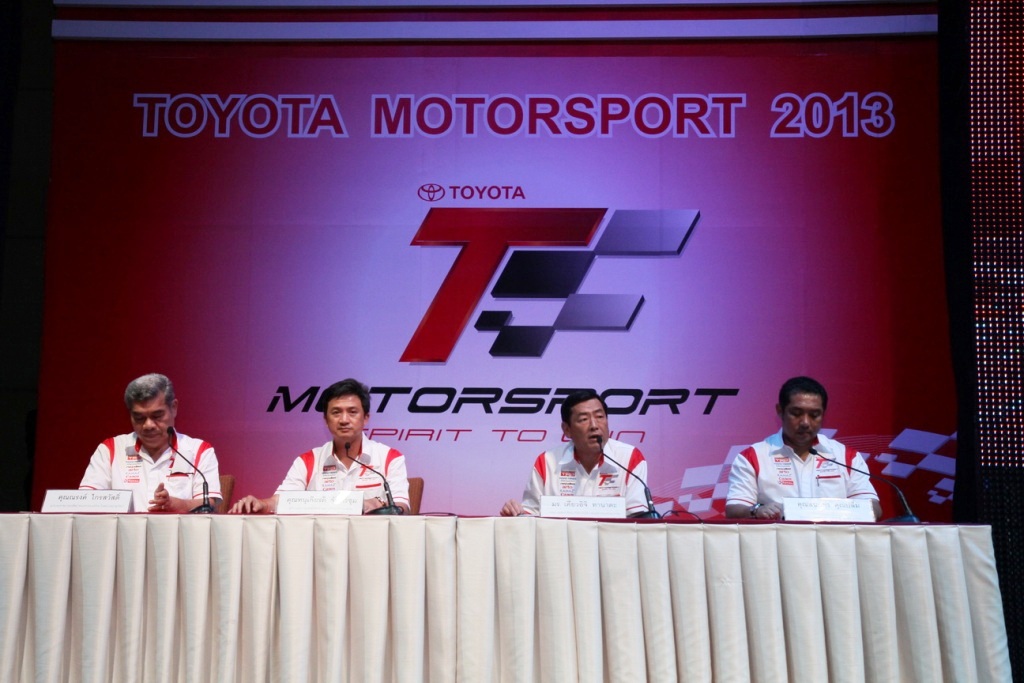 บริษัท โตโยต้า มอเตอร์ ประเทศไทย จำกัด โดย มร.เคียวอิจิ ทานาดะ กรรมการผู้จัดการใหญ่ บริษัท โตโยต้า มอเตอร์ ประเทศไทย จำกัด จัดงานแถลงข่าว“โตโยต้า มอเตอร์ สปอร์ต 2013” การแข่งขันรถยนต์ทางเรียบรายการหลักของประเทศไทย ที่ได้รับความนิยมสูงสุดจากแฟนกีฬา มอเตอร์สปอร์ต ด้วยรูปแบบการแข่งขันที่ตื่นเต้นเร้าใจและกิจกรรมพิเศษพร้อมโชว์สุดมันส์โดยไฮไลท์ พิเศษกับการนำดาราคนดังมาลงสนามแข่งปะทะนักแข่งฝีมือดีกรีระดับประเทศ และเปิดตัวรถแข่งวีออสใหม่ โดยมี นายทนุเกียรติ จันทร์ชุม ผอ.กองกีฬาอาชีพ การกีฬาแห่งประเทศไทย นายณรงค์ ไกรสวัสดิ์ อุปนายก ราชยานยนต์สมาคมแห่งประเทศไทยในพระบรมราชูปถัมภ์ และนายสนธยา คุณปลื้ม รัฐมนตรีว่าการกระทรวงวัฒนธรรมและประธานจัดการแข่งขัน บางแสนไทยแลนด์สปีดเฟสติวัล เข้าร่วมแถลงข่าว
