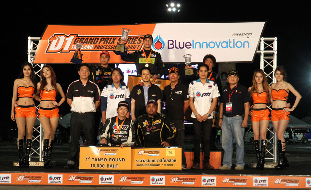 นัดเปิดฤดูกาล การแข่งขันรายการ ดีวัน กรังด์ปรีซ์ ไทยแลนด์ ซีรีส์ 2013 บาย พีทีที บลู อินโนเวชั่น สนามที่ 1 และ 2 นนท์ - สรานนท์ พรพัฒนารักษ์ จากทีม OVERDRIVE M-STORM 3M AUTO FILM 3K WITH YOKOHAMA ประเดิมคว้าแชมป์สนามที่ 1 ส่วน เอส- ชนัฐพนธ์ เกิดเปี่ยม จากทีม WESTLAKE TYRES คว้าแชมป์สนามที่ 2 ซึ่งชิงชัยกับมาซาโอะ ซูเอนากะ ทีม OVERDRIVE M-STORM 3M AUTOFILM 3K ณ ลานทะเลสาบ เมืองทองธานี ภายในงานยังมีการแสดงจาก Drift Angle ที่บินตรงมาสร้างความสนุกจากประเทศญี่ปุ่น พร้อมด้วยโชว์จาก เอฟเอชเอ็ม จีเอ็นดี กรุ๊ป, โชว์แดนซ์จาก ปตท., การแสดงจากสิงห์, มินิคอนเสิร์ตจากแคนดี้มาเฟีย และบูดาเบลส ปิดท้ายค่ำคืนด้วยนักดริฟท์จากรอบวิ่งคู่ (ซุยโซ่) ที่ออกมาให้แฟนๆ ถ่ายภาพกันแบบตัวต่อตัวอีกด้วย สำหรับสนาม 3 - 4 วันที่ 24 - 25 สิงหาคม ที่จังหวัดสงขลา และสนามที่ 5 - 6 วันที่ 28 - 29 กันยายน ที่กรุงเทพฯ สามารถจองบัตรเช้าชมได้แล้ววันนี้ที่ไทยทิคเก็ตเมเจอร์ทุกสาขา และจุดจำหน่ายบัตรหน้าสนามแข่ง บัตรราคา 200 และ 300 บาท ติดตามเทปบันทึภาพการแข่งขันสนามที่ 1 - 2 ได้ในวันที่ 3 - 4 กรกฎาคม 2556 เวลา 22.00 น. - 24.00 น. ทางช่องสยามสปอร์ต ไลฟ์ (ทรูวิชั่น 116) สอบาถามข้อมูลเพิ่มเติมได้ทาง www.d1thailand.com หรือ www.facebook.com/d1thailand