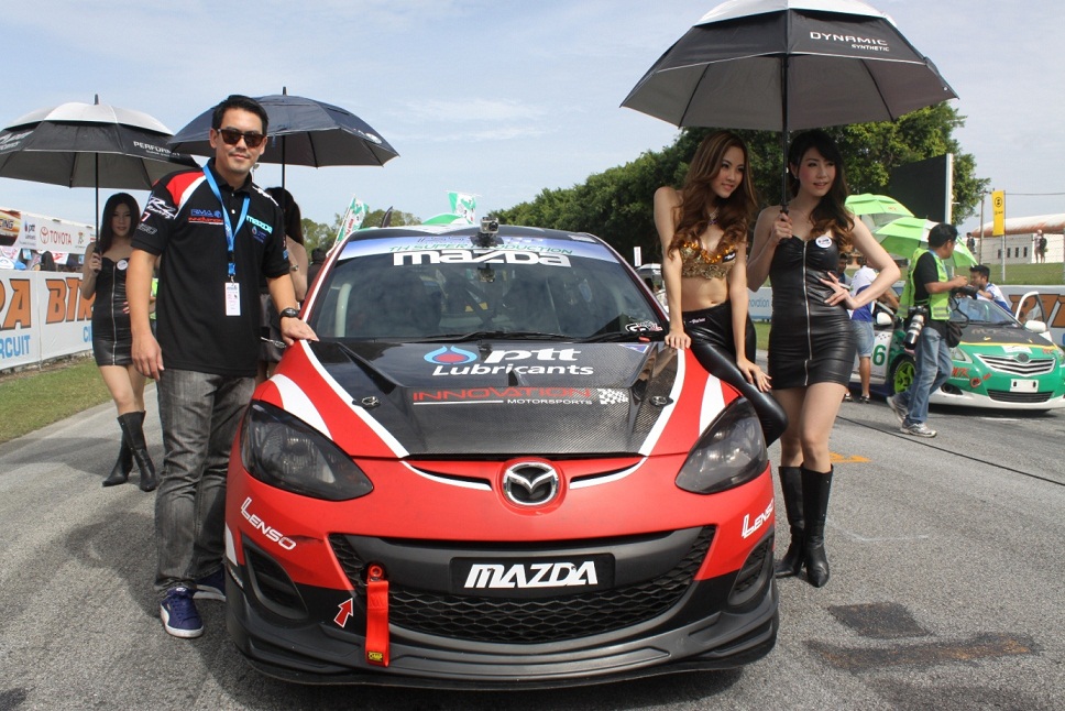 มาสด้า เซลส์ ประเทศไทย จำกัด ส่งทีมมอเตอร์สปอร์ต Innovation Motorsports ลงสู้ศึก Thailand Super Series 2013 สนามที่ 3-4 ที่จัดขึ้นสนามพีระ เซอร์กิต พัทยา โดยเฉพาะสนามนี้มาสด้า2 ได้ประกาศศักดาบนสังเวียนมอเตอร์สปอร์ตประเดิมสนามแรกได้อย่างสวยสดงดงาม กับ 2 คู่หู พีท ทองเจือ ที่ควบมาสด้า2 สปอร์ต แฮตช์แบค 5 ประตู หมายเลข 17 เข้าเส้นชัยอันดับที่ 4 ทั้ง 2 สนาม ส่วนไมค์ ฟรีแมน ที่ควบมาสด้า2 เอลิแกนซ์ ซีดาน 4 ประตู หมายเลข 55 สามารถจบการแข่งขันในอันดับที่ 12 และ 19 การแข่งขันรถยนต์ทางเรียบรายการที่ยิ่งใหญ่ที่สุดของประเทศเทศไทย รายการ Thailand Super Series 2013 เริ่มต้นขึ้นแล้ว สำหรับสนามที่ 3-4 ที่สนามพีระ เซอร์กิต เมืองพัทยา ซึ่งเป็นสนามแรกที่จัดการแข่งขันในประเทศไทย โดยมาสด้าส่งรถรถยนต์นั่งสปอร์ตมาสด้า2 เข้าร่วมการแข่งขัน 2 คัน ในรุ่น Thailand Super Production ซึ่งมีรถแข่งเข้าร่วมการแข่งขันทั้ง Class A, Class B และ Class C รวมกันทั้งสิ้น 29 คัน ซึ่งมาสด้า2 สปอร์ตตัวจี๊ดที่ลงประลองความเร็วในการแข่งขันสนามนี้เป็นสนามแรกเช่นกัน และก็ไม่ทำให้แฟนๆ ที่เข้าร่วมเชียร์และชมการแข่งขันผิดหวัง สามารถก้าวขึ้นโพเดี่ยมทันทีหลังการจบการแข่งขัน 18 รอบสนาม คว้าชัยชนะอันดับที่ 4 ได้ทั้ง 2 สนาม