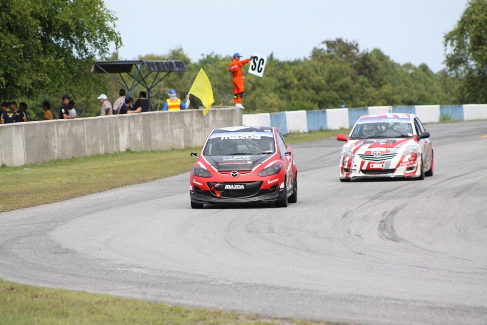 สำหรับการแข่งขันในสนามนี้นี้ถือเป็นครั้งแรกของทั้ง 2 นักแข่ง ที่จะได้ควบมาสด้า2 คู่ใจลงทำการแข่งขัน ซึ่งในรอบจัดอันดับวันศุกร์ที่ 16 สิงหาคมนั้นสองนักแข่งทำได้ดีทีเดียว ออกสตาร์ทในตำแหน่งที่ 7 สำหรับพีท ทองเจือ และตำแหน่งที่ 8 สำหรับไมค์ ฟรีแมน การแข่งขันในสนามที่ 3 หลังไฟเขียวดวงที่ห้าดับลง สองนักแข่งจากทีมมาสด้า ก็พุ่งออกตัวไปอย่างรวดเร็วก่อนที่จะขยับอันดับขึ้นมาอยู่ในกลุ่มผู้นำทันที หลังจากผ่านโค้งแรกก็ขึ้นมาอยู่ที่ 3-4 ทันที ก่อนที่จบจบการแข่งขั้นในอันดับที่ 4 สำหรับพีท ทองเจือ ส่วนไมค์ ฟรีแมน ในช่วงเข้าโค้งก่อนทางตรงเกิดการรถเกิดการเบียดกับคู่แข่งทำให้เสียการทรงตัวหมุนไปหนึ่งรอบ แต่ก็สามารถประคองรถเข้าเส้นชัยในอันดับที่ 12 ในสนามแรก ส่วนสนามที่ 4 ทำการแข่งขันในวันอาทิตย์ สองนักแข่งก็แท็กทีมลงสู้กันต่อ พีท ทองเจือ ออกสตาร์ทอันดับที่สอง สามารถคว้าอันดับที่ 4 ได้อีกสนาม ส่วนไมค์ ฟรีแมน ออกสตาร์ทอันดับสุดท้าย สามารถจบการแข่งขันในอันดับที่ 19 นางสาวสุรีทิพย์ ละอองทอง โฉมทองดี รองประธานกรรมการฝ่ายการตลาด กล่าวว่า สำหรับแฟนๆ กีฬามอเตอร์สปอร์ตไม่ควรพลาดกับกีฬาสุดมันส์ สามารถร่วมเชียร์และส่งกำลังใจให้กับ 2 นักแข่งของมาสด้า สนามถัดไปสามารถลุ้นต่อได้ในส่วนของสนามที่ 5-6 วันที่ 5-6 ตุลาคม ที่สนามพีระ เซอร์กิต เช่นเดียวกัน ส่วนในสนามสุดท้ายซึ่งถือเป็นไฮไลท์เด็ดของการแข่งขัน นั่นคือการปิดถนนเลียบชายหาดบางแสน โดยจะจัดให้มีขึ้นในระหว่างวันที่ 14-15 ธันวาคมนี้ หรือสามารถเข้าไปอัพเดทความเคลื่อนไหวได้ที่ www.facebook.com/mazda2life