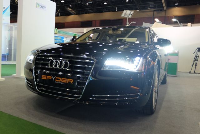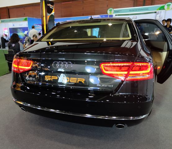รถยนต์ต้นแบบ Hybrid AUDI A8L เปิดตัวครั้งแรกในไทยในงาน EcoLightTech ASIA 2013 โดดเด่นด้วยระบบไฟ LED ทั้งคัน และหน้าจอแบบ OLED สุดทันสมัย สำหรับ Audi A8 L Hybrid เป็นรถที่ได้รับการออกแบบให้มีความสง่างาม หรูหรา ภูมิฐาน ด้วย กระจังหน้าที่เป็นเอกลักษณ์ของค่ายออดี้ ไฟหน้า LED High-Beam Assist ที่ออกแบบมาได้สวยงามภายในโคม