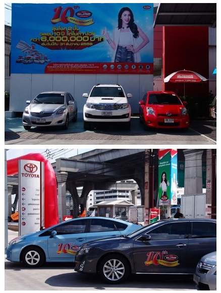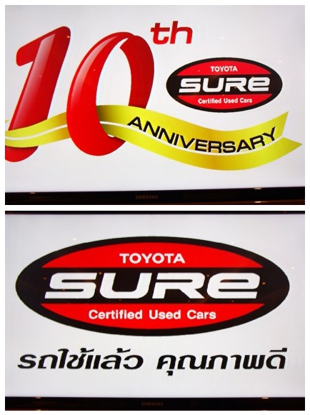 นายวิเชียร รองกรรมการผู้จัดการใหญ่ บริษัท Toyota Motor Thailand co,ltd. กล่าวว่า“ตลอด ระยะเวลาที่ผ่านมาผลการดำเนินงานของ Toyota Sure ประสบผลสำเร็จเป็นอย่างดี มีมาตรฐานในการตรวจเช็ก มีการรับประกัน และมีความน่าเชื่อถือ พร้อมการบริการที่สร้างความพึงพอใจและความมั่นใจให้กับลูกค้า ทำให้ Toyota Sureได้เปิดให้บริการแก่ลูกค้าเป็นจำนวนทั้งสิ้น 100 โชว์รูมทั่วประเทศ และในโอกาสพิเศษนี้ได้จัดเตรียมแคมเปญฉลองครบรอบ 10 ปี เพื่อขอบคุณลูกค้าที่ซื้อรถรับรองคุณภาพ Toyota Sure ภายในงานไทยแลนด์อินเตอร์เนชั่นแนล มอเตอร์ เอ็กซ์โป 2013 และผู้จำหน่ายทั่วประเทศ โดยจะได้รับสิทธิ์ลุ้นรับโชค 2 ชั้น มูลค่าของรางวัลรวมทั้งสิ้นกว่า 6 ล้านบาท”