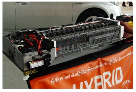 ในรถยนต์ Hybrid จะมีชุดส่งกำลัง ชุดแปลงกระแสไฟฟ้า ชุดแบตเตอรี่ Hybrid ซึ่งเป็นแบตฯ กระแสแรงเคลื่อนสูงกับแบตฯ เสริม สำหรับแบตเตอรี่เสริมของรถ Hybrid จาก Toyota จะไม่มีจุดเติมน้ำกลั่น เป็นแบตฯ ประเภท AGM หรือแบตเตอรี่แบบแห้งเพื่อจ่ายกระแสไฟเลี้ยงวงจรไฟฟ้า การตรวจเช็กจะเริ่มจากการวัดคุณภาพของแผ่นธาตุ หากคุณภาพของแบตเตอรี่แบบแห้งเสื่อมสภาพลงจะมีการเปลี่ยนใหม่ทันทีเพื่อไม่ให้ลูกค้าเกิดปัญหาขณะขับขี่ใช้งาน สำหรับแบตเตอรี่ของระบบ Hybrid จากพานาโซนิคก็จะได้รับการตรวจเช็กอย่างละเอียดด้วยเช่นกัน หากแรงเคลื่อนของกระแสไฟ หรือ CCA ต่ำกว่า 12 แอมป์ แบตเตอรี่ต้องได้รับการรีชาร์จกระแสไฟฟ้าใหม่เพื่อตรวจสอบอย่างละเอียดอีกครั้ง สำหรับแบตเตอรี่ Hybrid จะมี ECU คอยตรวจเช็กให้อยู่แล้วจึงสามารถรู้ได้จากจอแจ้งเตือนสถานะการทำงาน