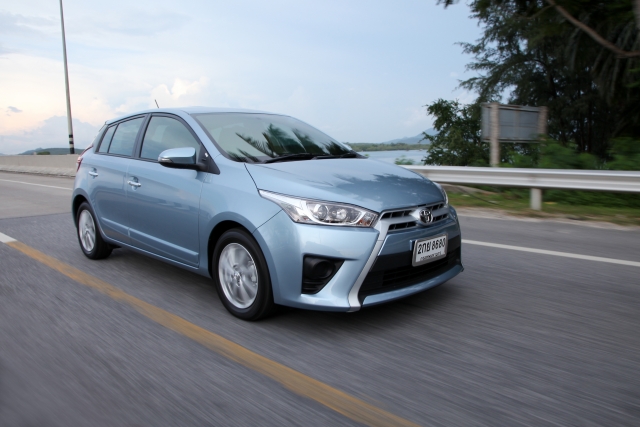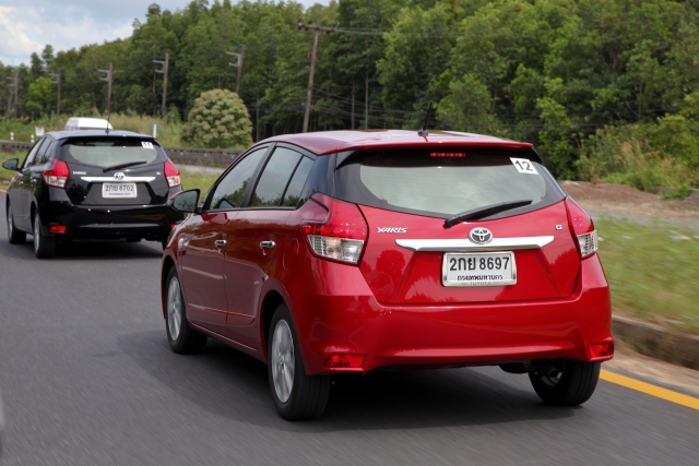 งานนี้ทีมงานโตโยต้าขอท้าพิสูจน์ ด้วยการจัดทริปทดสอบในเส้นภูเก็ต-กระบี่ รวมระยะทางกว่า 200 กิโลเมตร โดยให้ผู้ร่วมทริปทดสอบนั่งคันละ 2 คน หลังจากเข้าไปนั่งในตำแหน่งหลังพวงมาลัย ปรับเบาะที่นั่ง อุปกรณ์ต่าง ๆ ให้เหมาะสมแล้ว ถือว่าทัศนวิสัยของยาริสทำออกมาค่อนข้างดี เอื้อมมือไปกดปุ่ม "สตาร์ต" เครื่องยนต์ 3NR-FE Dual VVT-I 4สูบ DOHC เครื่องยนต์ขนาด 1.2 ลิตร พร้อมม้า 89 ตัว ซึ่งทำงานผสานกับเกียร์ซูเปอร์ CVT-i พร้อมนำพายาริสคันนี้ลัดเลาะไปยังจุดหมายปลายทางที่หาดทับแขก จ.กระบี่ ในช่วงออกตัว ถือว่ารถคันนี้ทำได้ไม่ขี้เหร่...หลังรับไม้ต่อยังจุดพักรถในช่วง 100 กิโลเมตรแรก เส้นทางคดเคี้ยวขึ้น-ลงเขา วิ่งด้วยความเร็วอยู่ที่ระดับเฉลี่ย 120 กิโลเมตรต่อชั่วโมงได้แบบสบาย ๆ ในช่วงถนนโล่งยาว หาจังหวะกดทำความเร็ว เข็มไมล์ไต่ระดับไปเกือบ 160 กิโลเมตรต่อชั่วโมง เพื่อดูตีนปลายว่าจะประทับใจแค่ไหน ผลออกมาค่อนข้างน่าพอใจด้วยความเร็วขนาดนี้ ยิ่งการเก็บเสียงภายในห้องโดยสารนั้นต้องชมโตโยต้า ทำออกมาได้ค่อนข้างน่าประทับใจ แต่อาจจะต้องออกแรงเข่นขยี้เครื่องยนต์บ้างเล็กน้อยซึ่งตรงนี้ขอออกตัวสักหน่อย เพราะบุคลิกของรถที่เป็นรถใช้ในเมือง เมื่อนำมาวิ่งในทางนอกเมืองด้วยความเร็วขนาดนี้ บางช่วงก็ต้องขย่มกันบ้าง