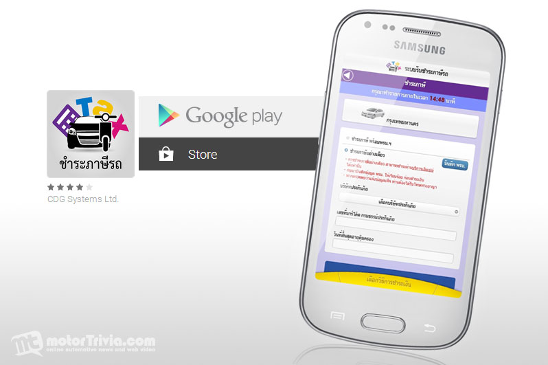 กรมการขนส่งทางบก พร้อมให้บริการรับชำระภาษีรถผ่านโทรศัพท์มือถือ เพื่อตอบสนองรูปแบบการใช้ชีวิตของคนรุ่นใหม่ และเพิ่มช่องทางอำนวยความสะดวกให้กับประชาชนมากยิ่งขึ้น สนใจดูรายละเอียดได้ที่เวบไซต์ dlt.go.th หรือ elaw.dlt.go.th. เพื่อเป็นการอำนวยความสะดวกแก่ประชาชนในการชำระภาษีรถยนต์ประจำปี กรมการขนส่งทางบก ได้เพิ่มช่องทางรับชำระภาษีด้วยบริการที่หลากหลาย ล่าสุดร่วมมือกับ บริษัท แอดวานซ์ อินโฟร์เซอร์วิส จำกัด (มหาชน) และ บริษัท แอดวานซ์ เอ็มเปย์ จำกัด ในการเปิดให้บริการรับชำระภาษีรถประจำปี ผ่านโทรศัพท์เคลื่อนที่ให้กับรถเก๋ง รถตู้ และรถปิคอัพ รถที่สามารถชำระภาษีผ่านโทรศัพท์มือถือ ต้องเป็นรถที่มีอายุการใช้งานไม่เกิน 7 ปี นับแต่วันที่จดทะเบียนครั้งแรก และ ต้องไม่เป็นรถที่ใช้ก๊าซ CNG หรือ LPG เป็นเชื้อเพลิง และ รถจักรยานยนต์ที่มีอายุการใช้งานไม่เกิน 5 ปี นับแต่วันที่จดทะเบียนครั้งแรก และต้องไม่มีการเปลี่ยนแปลงสาระสำคัญของรถให้ผิดไปจากรายการที่จดทะเบียนไว้ ไม่ถูกงดรับชำระภาษีรถประจำปี หรือระงับการใช้รถชั่วคราว ไม่ค้างชำระภาษีรถประจำปี หรือค้างชำระภาษีรถประจำปีได้ไม่เกิน 3 ปี และต้องมีกรมธรรม์ประกันภัยตาม พ.ร.บ. คุ้มครองผู้ประสบภัยจากรถ พ.ศ. 2535 ที่ยังไม่สิ้นความคุ้มครอง ทั้งนี้ สามารถดำเนินการได้ล่วงหน้าก่อนวันครบกำหนดชำระภาษีรถประจำปีครั้งถัดไปได้ไม่เกิน 3 เดือน ผู้ที่ประสงค์จะชำระภาษีรถประจำปีผ่านมือถือในระบบเครือข่าย AIS ต้องติดตั้งโปรแกรมการชำระภาษีรถประจำปีมาไว้บนมือถือ ผ่านทาง Play Store สำหรับระบบปฏิบัติการ Android และลงทะเบียนโดยบันทึกรายละเอียดตามที่ระบบกำหนด เช่น หมายเลขบัตรประจำตัวประชาชน ชื่อ นามสกุล ของผู้ใช้งาน และข้อมูลเกี่ยวกับรถ ก่อนระบุทะเบียนรถที่ต้องการชำระ พร้อมชื่อ-ที่อยู่จัดส่งเอกสารกลับ และเลือกวิธีการชำระผ่านบริการ เอ็มเปย์ ผู้ที่ชำระภาษีรถประจำปีผ่านมือถือ จะได้รับใบเสร็จรับเงิน พร้อมเครื่องหมายแสดงการเสียภาษีรถประจำปี และกรมธรรม์คุ้มครองผู้ประสบภัยจากรถภายใน 7 วัน นับจากวันที่ชำระเงิน โดยเสียค่าใช้จ่ายเพียง 60 บาท ผู้สนใจชำระภาษีรถสามารถดูรายละเอียดได้ที่เวบไซต์ dlt.go.th หรือ elaw.dlt.go.th หรือสอบถามเพิ่มเติมได้ที่ สำนักงานขนส่งกรุงเทพมหานครพื้นที่ 1-5 หรือสอบถาม Call Center 1584
