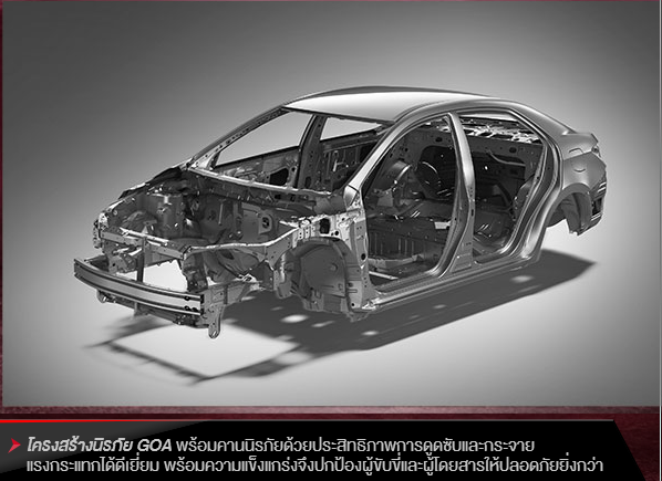 ส่วนของโครงสร้างตัวถังโดยพื้นฐานเหมือน อัลติส รุ่นวีตัวท็อปที่เคยนำลงไปแล้ว แต่โตโยต้าได้เพิ่มครอสบาร์เสริมความแข็งแรงที่บริเวณด้านหลังเบาะนั่งหลัง ช่วยให้โครงสร้างตัวถังมีความแข็งแรงเพิ่มขึ้นอีก 30% และส่งผลให้การบิดของตัวถังลดลงเมื่อใช้ความเร็วสูง