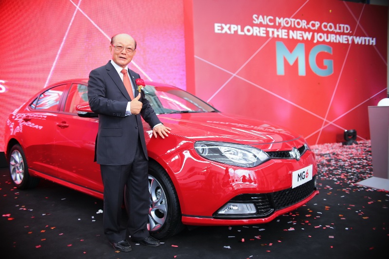 โดยในงานแถลงข่าวฯ ยังได้รับเกียรติจากคุณธนินท์ เจียรวนนท์ ประธานกรรมการและประธานคณะผู้บริหารเครือเจริญโภคภัณฑ์ ในการร่วมเป็นประธานในพิธีฉลองและเปิดตัวรถยนต์คันแรกจากสายการผลิตในประเทศไทย ทั้งยังให้เกียรติร่วมเขียนอวยพรบนรถยนต์เอ็มจี 6 เครื่องยนต์ 1.8 เทอร์โบรุ่นเอ็กซ์ แบบ 4 ประตูสีรีกัลเรด พร้อมตอกย้ำความเชื่อมั่นด้วยการเป็นเจ้าของรถยนต์เอ็มจี 6 เครื่องยนต์ 1.8 เทอร์โบ รุ่นเอ็กซ์ แบบ 5 ประตูฟาสต์แบ็ก สีแพลตตินั่มซิลเวอร์ ที่มาพร้อมกับซันรู้ฟ สุดหรู เป็นคนแรกในประเทศไทยอีกด้วย โดยมี มร. เฉิน หง ประธานกรรมการ บริษัทเซี่ยงไฮ้ ออโตโมทีฟ อินดัสทรี คอร์ปอเรชั่น ลิมิเต็ด เป็นผู้ส่งมอบรถยนต์ดังกล่าวด้วยตัวเอง