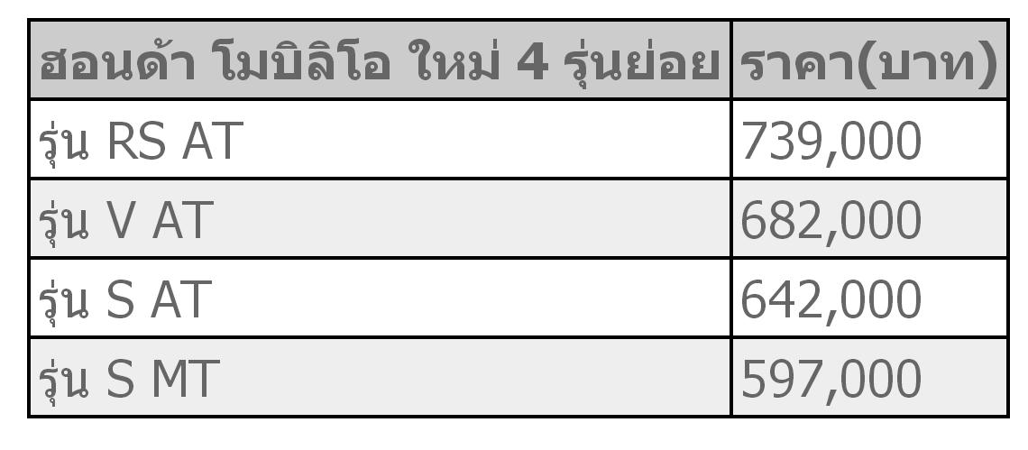 ฮอนด้า โมบิลิโอ ใหม่ 4 รุ่นย่อย ราคา(บาท)