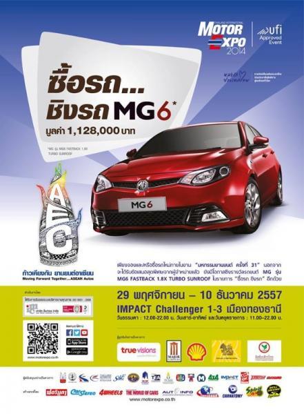 1. “ซื้อรถ ชิงรถ” เมื่อจองหรือซื้อรถยนต์ใหม่ภายในงาน มีสิทธิ์ชิงรางวัลรถยนต์ MG รุ่น MG6 FASTBACK 1.8X TURBO SUNROOF มูลค่า 1,128,000 บาท จำนวน 1 รางวัล