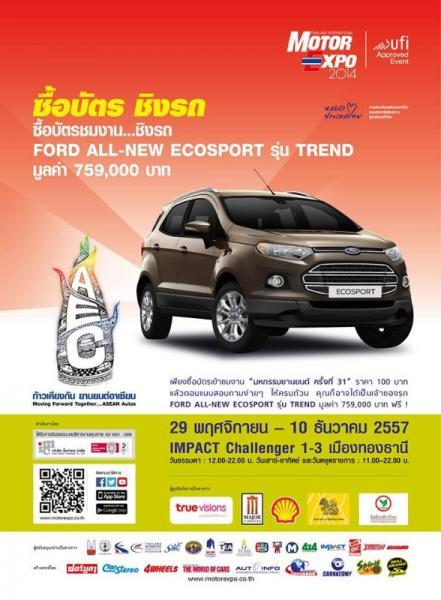 2. “ซื้อบัตร ชิงรถ” ผู้ที่ซื้อบัตรชมงาน มีสิทธิ์ชิงโชครถยนต์ FORD ALL-NEW ECOSPORT รุ่น TREND มูลค่า 759,000 บาท จำนวน 1 รางวัล พร้อมรางวัลพิเศษอีกมากมาย