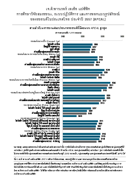 เจ.ดี.พาวเวอร์ เอเชีย แปซิฟิก รายงาน: รถยนต์เอนกประสงค์เอสยูวี (SUV) ได้รับคะแนนAPEAL สูงสุด