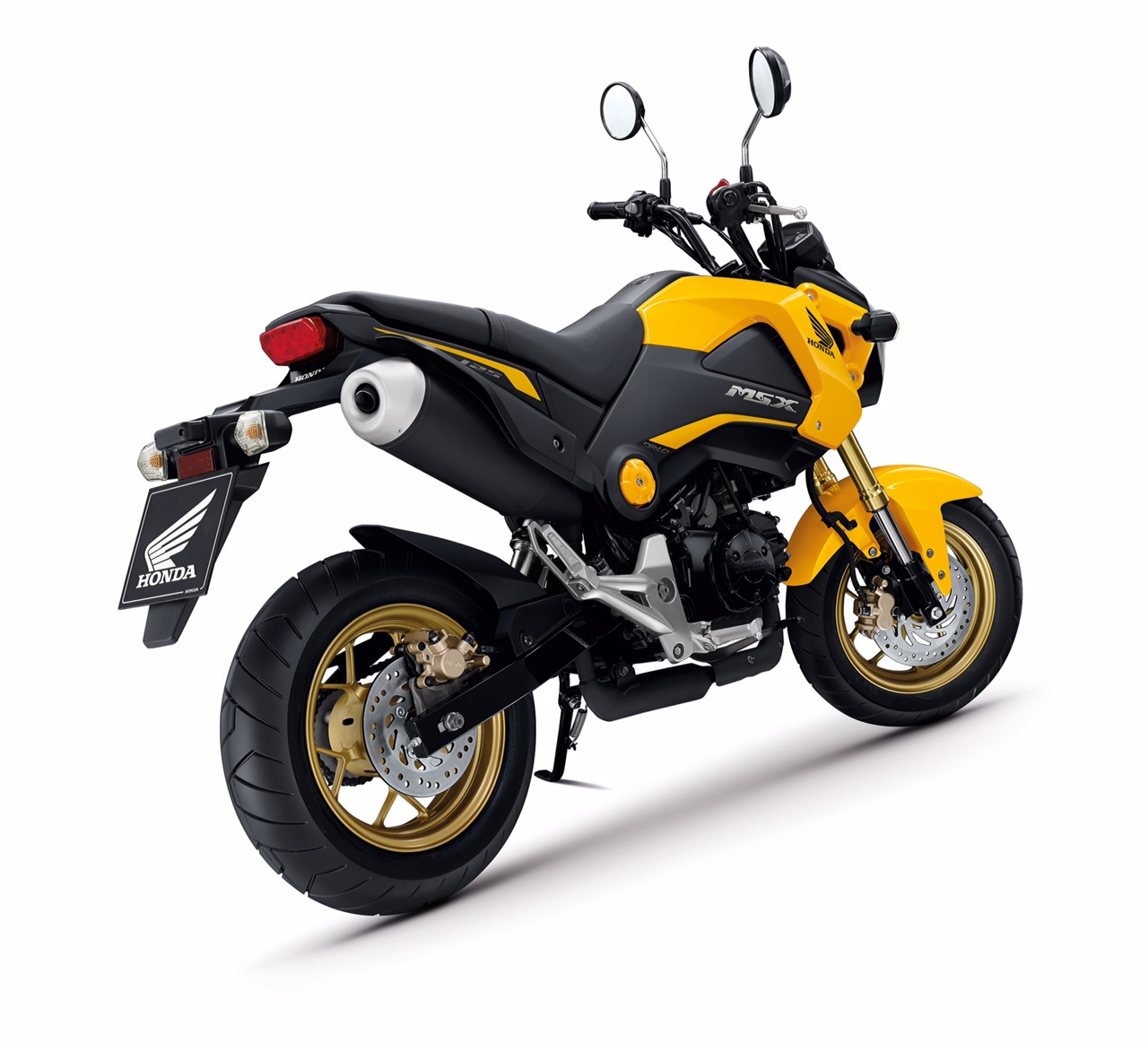 New Honda MSX125 (ฮอนด้า เอ็มเอสเอ็กซ์ 125ใหม่) ได้รับการออกแบบภายใต้คอนเซปต์ “Clutching My Adrenaline ปล่อยมันส์ออกมาซะ”ให้เป็นรถมินิสตรีทไบค์ที่มีความโฉบเฉี่ยวเหนือกว่าใครในระดับเดียวกัน เท่ด้วยชุดสีแบบทูโทนตัดดำด้านและกราฟิกใหม่แบบ Muscular Forward Balanceเน้นรายละเอียดความเป็นสปอร์ตในทุกจุดตั้งแต่หัวจรดท้าย ลงตัวกับล้อแม็กสีทองขนาด 12 นิ้ว โดดเด่นด้วยไฟหน้าแบบโปรเจคเตอร์และไฟท้ายแบบ LED, หน้าปัดเรือนไมล์แบบดิจิตอลมั่นใจด้วยโช๊คหน้าแบบหัวกลับสไตล์บิ๊กไบค์ช่วยรองรับแรงกระแทกได้ดีกว่าพร้อมสวิทช์เปิดปิดเครื่องยนต์เพื่อความปลอดภัย
