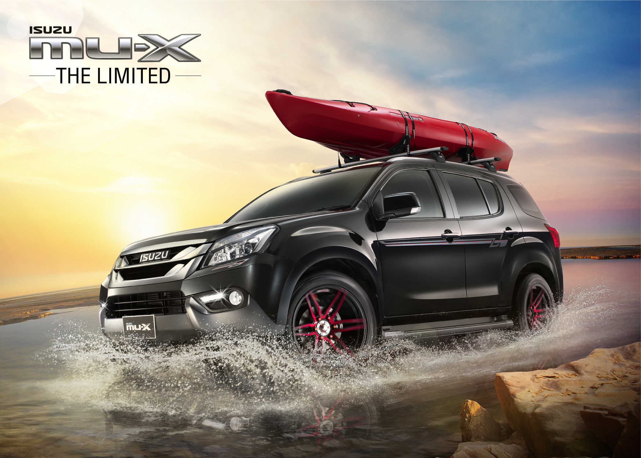 ISUZU MU-X รุ่นพิเศษ THE LIMITED ยอดยนตรกรรมอเนกประสงค์ระดับหรู รุ่นพิเศษ เพิ่มความเท่ สปอร์ตด้วยล้ออัลลอยด์ Koukido Silver สีเงินเข้มเงาพิเศษ กระจกมองข้างแบบ Color Key และสติกเกอร์กราฟฟิกดีไซน์พิเศษรอบคัน เรียบหรูแต่เท่ลงตัวด้วยห้องโดยสารโทนสีดำอารมณ์สปอร์ต พร้อมเบาะนั่งกึ่งหนังแท้สีดำ Anthracite Black นอกจากนี้ยังรื่นรมย์ทุกการขับขี่กับระบบความบันเทิงทรงพลังกับระบบเครื่องเสียงและลำโพงจาก KENWOOD เท่ไม่เหมือนใคร มีสีขาว และสีดำให้เลือก