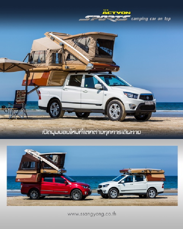 เผยโฉม Actyon Sports Camping ใหม่ปี2015 รถอเนกประสงค์นิยามใหม่ของการเดินทางลุยตลาดเมืองไทยติดตั้งบ้านขนาดย่อม ด้วยคอนเซ็ป “ท่องเที่ยวธรรมชาติ คํ่าไหน นอนนั่น” โชว์โฉมในงานบางกอก อินเตอร์เนชั่นแนล มอเตอร์โชว์ ครั้งที่ 36 ระหว่างวันที่ 23 มีนาคม – 5 เมษายน 2558 บู๊ธA16 อาคารชาเลนเจอร์อิมแพค เมืองทองธานี พร้อมโปรโมชั่นใหญ่รับร้อนกับซันยองทุกรุ่น ด้วยดอกเบี้ย 0% 3 ปี พร้อมฟรีประกันชั้นหนึ่ง และรับประกันอะไหล่ทุกชิ้นนานถึง 4 ปี พร้อมด้วยบริการรับส่งเพื่อเข้ารับบริการฟรี 5 ปี พิเศษยิ่งไปกว่านั้นจองภายในงานรับทันที ซัมซุง กาแลคซี โน๊ต Edge มูลค่ากว่า 3 หมื่นบาท