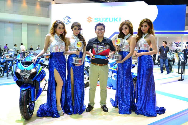 บริษัท ไทยซูซูกิมอเตอร์ จำกัด เข้าร่วมงานมหกรรมยานยนต์ ครั้งที่ 36 Bangkok International Motor Showบูธซูซูกิปีนี้มาภายใต้คอนเซ็ปต์ “RACING SPIRIT” รับรางวัล The Best Design Award 2015 โดยมี มร.โคทะ ทาโอกะ ผู้ช่วยผู้อำนวยการ บริษัท ไทยซูซูกิมอเตอร์ จำกัด รับมอบโล่รางวัลจาก ดร.ปราจิน เอี่ยมลำเนา ประธานจัดงาน และคุณจาตุรนต์ โกมลมิศร์ ณ บูธซูซูกิบิ๊กไบค์ อิมแพค เมืองทองธานี