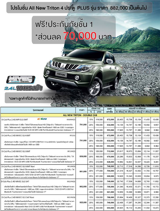 โปรโมชั่นแรงเกินคู่แข่ง มิตซูบิชิ ไทรทัน ใหม่ ปล่อยส่วนลด Mitsubishi Triton 2015 กว่า 80,000 บาท