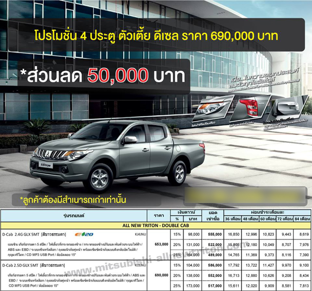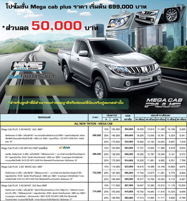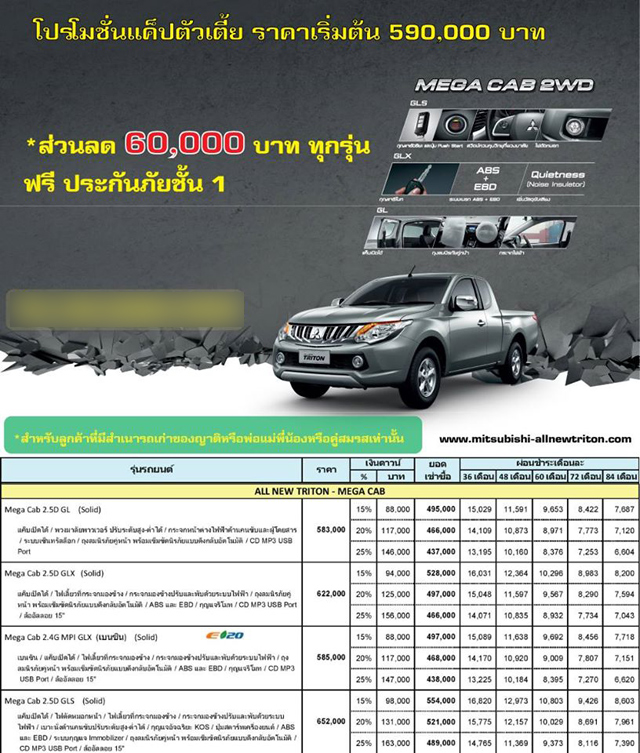 ใครที่สนใจก็ลองติดต่อที่ศูนย์มิตซูบิชิ ดูได้ เพื่อลองสอบถามรายละเอียด พร้อมทำความเข้าใจเงื่อนไขให้ดีก่อนเซ็นสัญญาซื่อกันด้วยครับ