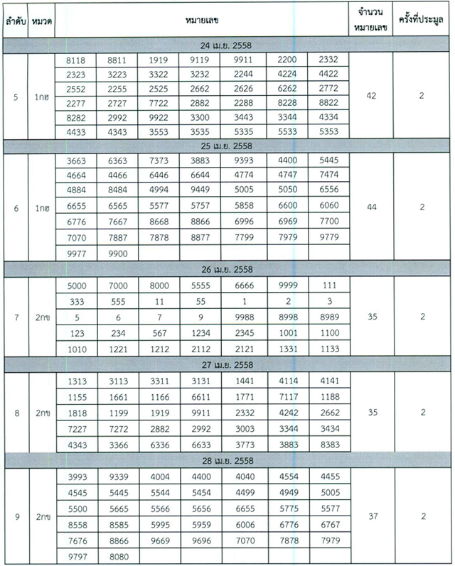 ตัวอย่างเลขทะเบียนสวยในการประมูลครั้งนี้ 1กอ 9999, 1กฮ 1111, 1กฮ 9999, 1กฮ 999, 2กข 9999 เอาเป็นว่าใครชอบเลข ไหนลองดูหมายเลขทะเบียนจากด้านล่างได้เลย
