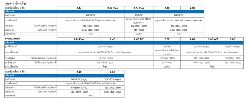 ราคา รุ่นมาตรฐาน 569,000-675,000 รุ่นสมาร์ทแค็บ 619,000-899,000 รุ่นดับเบิ้ลแค็บ 725,000-1,139,000