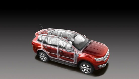 ปลอดภัยเต็มที่ด้วยระบบ ถุงลมนิรภัย 6 จุด มีถุงลมนิรภัยคู่หน้าสำหรับผู้ขับขี่และผู้โดยสารตอนหน้า ถุงลมนิรภัยด้านข้าง และม่านถุงลมนิรภัยที่จะเพิ่มความปลอดภัยให้กับผู้โดยสารแถวที่สองและสาม นอกจากนี้ในรุ่น 3.2L Titanium+ ยังมีถุงลมนิรภัยกันหัวเข่าด้านคนขับเพิ่มให้อีกจุดหนึ่งด้วย