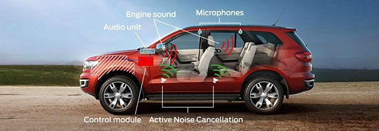 ระบบตัดเสียงรบกวนจากภายนอก (Active Noise Cancellation) ที่ใช้หลักการทำงานคล้ายกับการต้านเสียงรบกวนของหูฟังระดับพรีเมี่ยม โดยใช้ไมโครโฟนที่ไวต่อเสียงถึง 3 ตัว ในการตรวจจับและวัดระดับเสียงเครื่องยนต์ และปล่อยคลื่นเสียงต้านเพื่อลดการได้ยินเสียงของเครื่องยนต์ให้ได้เบาที่สุด ทำให้ไม่มีเสียงจากภายนอกมารบกวน ซึ่งนอกจากจะไม่มีเสียงรบกวนแล้ว คนนั่งก็ยังเพลิดเพลินกับการฟังเพลงได้มากขึ้นอีกด้วย ด้วยระบบเครื่องเสียงชั้นเยี่ยมกับลำโพง 9 ตัว พร้อมซับวูฟเฟอร์ และแอมพลิฟลายเออร์