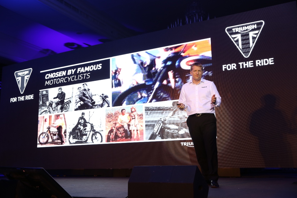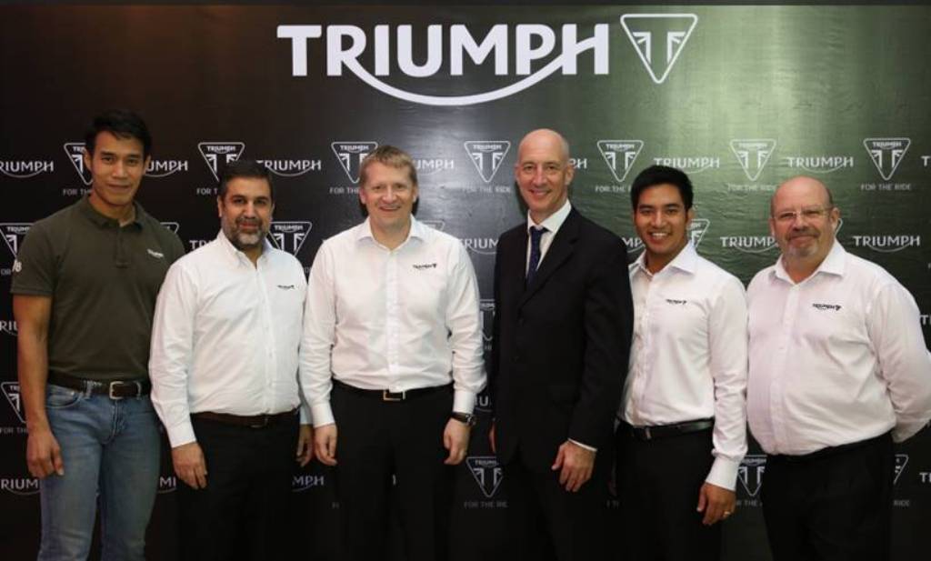 มร. พอล สเตราด์ ผู้อำนวยการฝ่ายขายและการตลาด-โกลบอล ไทรอัมพ์ มอเตอร์ไซเคิลส์ กล่าวว่า “ไทรอัมพ์ มอเตอร์ไซเคิลส์ เป็นแบรนด์อังกฤษที่มีจำหน่ายในกว่า 60 ประเทศ สำหรับเราประเทศไทยนับเป็นตลาดยุทธศาสตร์ในภูมิภาคเอเชียแปซิฟิก หลังจากไทรอัมพ์ มอเตอร์ไซเคิลส์ตัดสินใจเข้ามาตั้งโรงงานที่นี่เมื่อ 13 ปีก่อน เราได้มีการลงทุนพัฒนาการผลิตมาอย่างต่อเนื่อง การเข้ามาบริหารงานโดยตรงเป็นสิ่งที่อยู่ในแผนงานระยะยาวและมีนัยยะสำคัญต่อการเติบโตของแบรนด์ ในการนี้ประเทศไทยจะได้รับการสนับสนุนเชิงกลยุทธ ทั้งในการนำเสนอสินค้าใหม่ การทำการตลาด การขาย และบริการหลังการขาย ซึ่งทั้งลูกค้าและตัวแทนจำหน่ายจะได้รับประโยชน์อย่างเต็มที่ ผมรู้สึกยินดีเป็นอย่างยิ่งที่ได้มีส่วนร่วมในโอกาสพิเศษของไทรอัมพ์ มอเตอร์ไซเคิลส์ (ประเทศไทย) ในครั้งนี้”