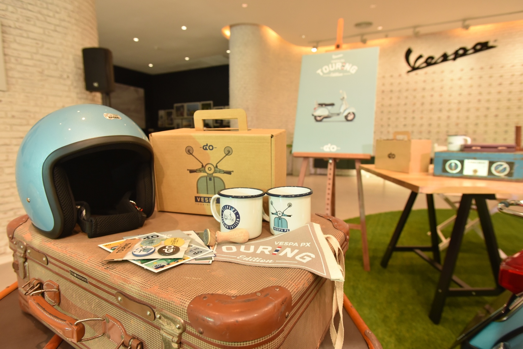 และเพื่อเพิ่มการเดินทางทุกขณะขับขี่ให้สนุกและโดดเด่นเป็นเอกลักษณ์มากขึ้น เวสป้า พีเอ็กซ์ ทัวร์ริ่ง อิดิชั่น ทุกคันมาพร้อมชุดของพรีเมี่ยมพิเศษมากมายที่ได้รับการออกแบบมาอย่างเข้าชุดกันพร้อมด้วยโลโก้ครบรอบ 40 ปี ได้แก่ หมวกกันน็อค ธงติดรถ กระเป๋าสะพายข้าง แก้วน้ำ ตราประทับ ชุดเข็มกลัด และชุดโปสการ์ด