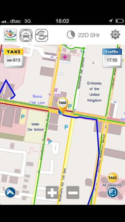หนึ่งในลูกเล่นสำคัญที่เกิดจากความร่วมมือกับรถแท็กซี่ คือ การติดตามแท็กซี่ที่คนในครอบครัวของผู้ใช้ App ใช้บริการ ซึ่งสามารถทำใด้กับรถแท็กซี่ 10,000 คันของกลุ่ม TSguare โดยสังเกตได้จากสติ๊กเกอร์ก่อนเลือกขึ้นแท็กซี่