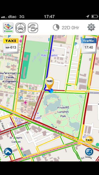 ลูกเล่นนี้จะช่วยให้ลูกๆ สามารถบอกผู้ปกครองได้ว่ากำลังขึ้นแท็กซี่คันไหนอยู่ และผู้ปกครองสามารถตามดูได้จาก App ในมือถือของตน พร้อมๆ กับการดูข้อมูลสภาพจราจรได้ด้วย โดย App นี้จะช่วยเสริมความปลอดภัยและเสริมความสบายใจให้กับครอบครัวได้ในระดับหนึ่ง ทั้งนี้หากผู้ใช้บริการนั่งแท็กซี่ที่ไม่ได้ติดตั้ง GPS ของ TSguare คุณก็ยังสามารถใช้ App อื่นอย่าง TSguare Family ติดตามได้เช่นกัน โดยใช้ GPS ในสมาร์ทโฟนของคนที่คุณรัก ซึ่งสามารถดูข้อมูลจราจรได้ในเวลาเดียวกันด้วย