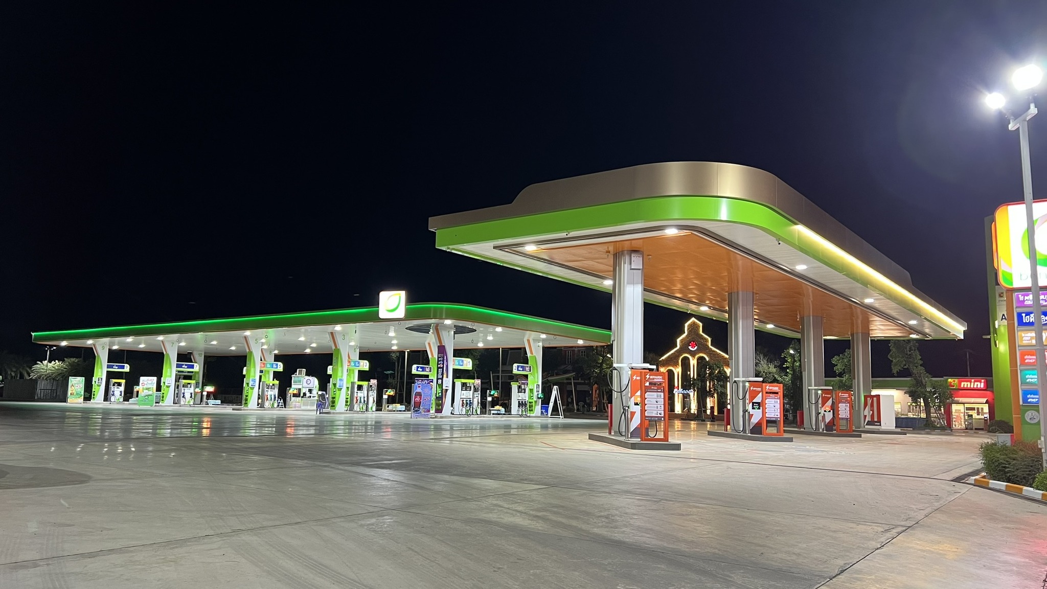 - สถานีน้ำมันบางจาก เพชรบุรี – 6 ช่องจอด กำลังไฟรวม 360 kW