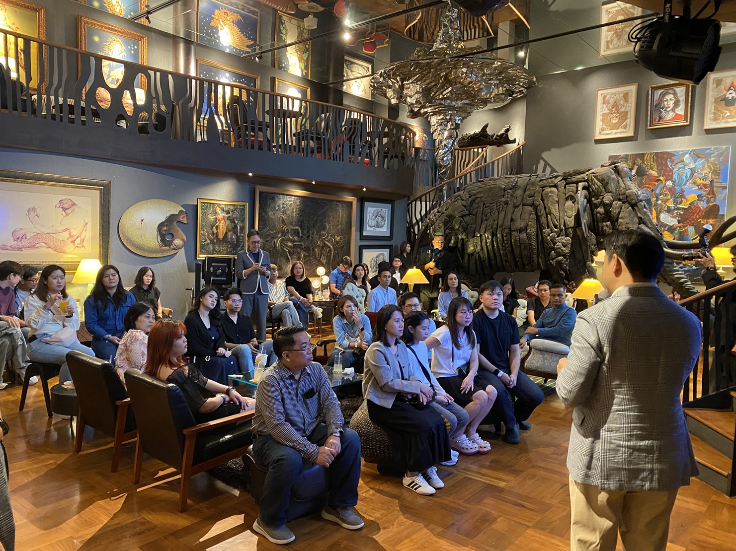 ทริป The Mobility of Art Experience ได้เชิญเจ้าของรถ GEELY EX5 จำนวน 35 ท่าน ร่วมเดินทางสู่ “แรงบันดาลใจจากงานศิลปะ” ผ่านหลากหลายกิจกรรม โดยไฮไลท์สำคัญคือ Exclusive Art Tour โดยนายเสริมคุณ คุณาวงศ์ ได้พาผู้เข้าร่วมสัมผัสเสน่ห์ศิลปะใน 3 โซนหลักของบ้านพิพิธภัณฑ์ เริ่มจาก The Residence บ้านพำนักที่ผสานศิลปะเข้ากับวิถีชีวิตประจำวัน ทั้งห้องอ่านหนังสือตกแต่งสไตล์ไทย ห้องน้ำชาที่จัดแสดงงานประณีตศิลป์หลายแขนง และ “ห้องจักรพันธุ์” ซึ่งรวบรวมผลงานของ อาจารย์จักรพันธุ์ โปษยกฤต และศิลปินไทยอีกมากมาย ต่อด้วย The Garden of Life สวนแห่งชีวิตที่รายล้อมด้วยงานประติมากรรมนับสิบชิ้น และปิดท้ายที่ The Cubic Building อาคารทรงเรขาคณิต 5 ชั้น อันเป็นพื้นที่จัดแสดงศิลปะร่วมสมัย ทั้ง 3 โซนยังถูกใช้เป็นพื้นที่จัดแสดง GEELY EX5 ในกิจกรรมครั้งนี้ สะท้อนการผสานระหว่างศิลปะและยนตรกรรมที่เรียบง่าย ทันสมัย และสง่างาม อันเป็นเอกลักษณ์ของแบรนด์ GEELY ได้อย่างลงตัว นอกจากการเยี่ยมชมงานศิลปะแล้ว ผู้เข้าร่วมยังได้ดื่มด่ำกับเมนูคอร์สอาหารไทยที่รังสรรค์ขึ้นพิเศษสำหรับทริปนี้ ณ ห้อง Grand Garuda ซึ่งตกแต่งด้วยงานศิลป์ที่ถอดพิมพ์จากผลงานของศาสตราจารย์ศิลป์ พีระศรี และไม้แกะสลักของอาจารย์ถวัลย์ ดัชนี เติมเต็มบรรยากาศการเดินทางครั้งนี้ด้วยเสน่ห์ของงานศิลปะในทุกย่างก้าว