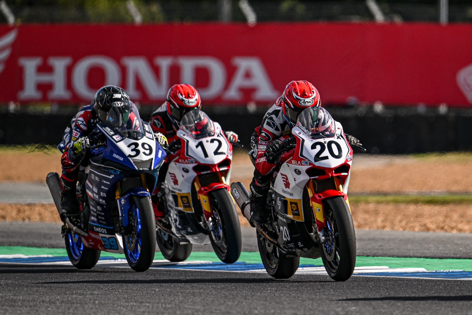“ฮอนด้า เรซซิ่ง ไทยแลนด์” ประสบความสำเร็จ ส่ง “อุ้ม” นพรุธพงษ์ บุญประเวศ หมายเลข 20 ลุยบิด Honda CBR250RR ใน เอเชีย โปรดักชั่น 250 (AP250) ในเรซที่ 2 สตาร์ตกริดที่ 5 ไล่บี้คู่แข่งแบบไม่มียั้ง สามารถคว้าโพเดียมอันดับ ที่ 2 มาครองได้อย่างสุดมันส์ ในฐานะนักแข่งไวลด์การ์ดที่ลงแข่งขันรายการนี้เป็นครั้งแรกในฤดูกาล สร้างปรากฏการณ์จัดหนักทำดับเบิ้ลโพเดียม 2 เรซติดต่อกัน แบบไร้ข้อกังหา พร้อมทีมเมท "เฟอร์” ปัญจรุจน์ จิตวิรุฬห์ฉัตร หมายเลข 12 สตาร์ตกริดที่ 21 เข้าเส้นชัยในอันดับที่ 5 แซงเดือดนักแข่งระดับหัวกระทิของเอเชีย ตอกย้ำสายเลือดนักแข่งตัวจริงของทีมฮอนด้าอย่างเต็มภาคภูมิ!