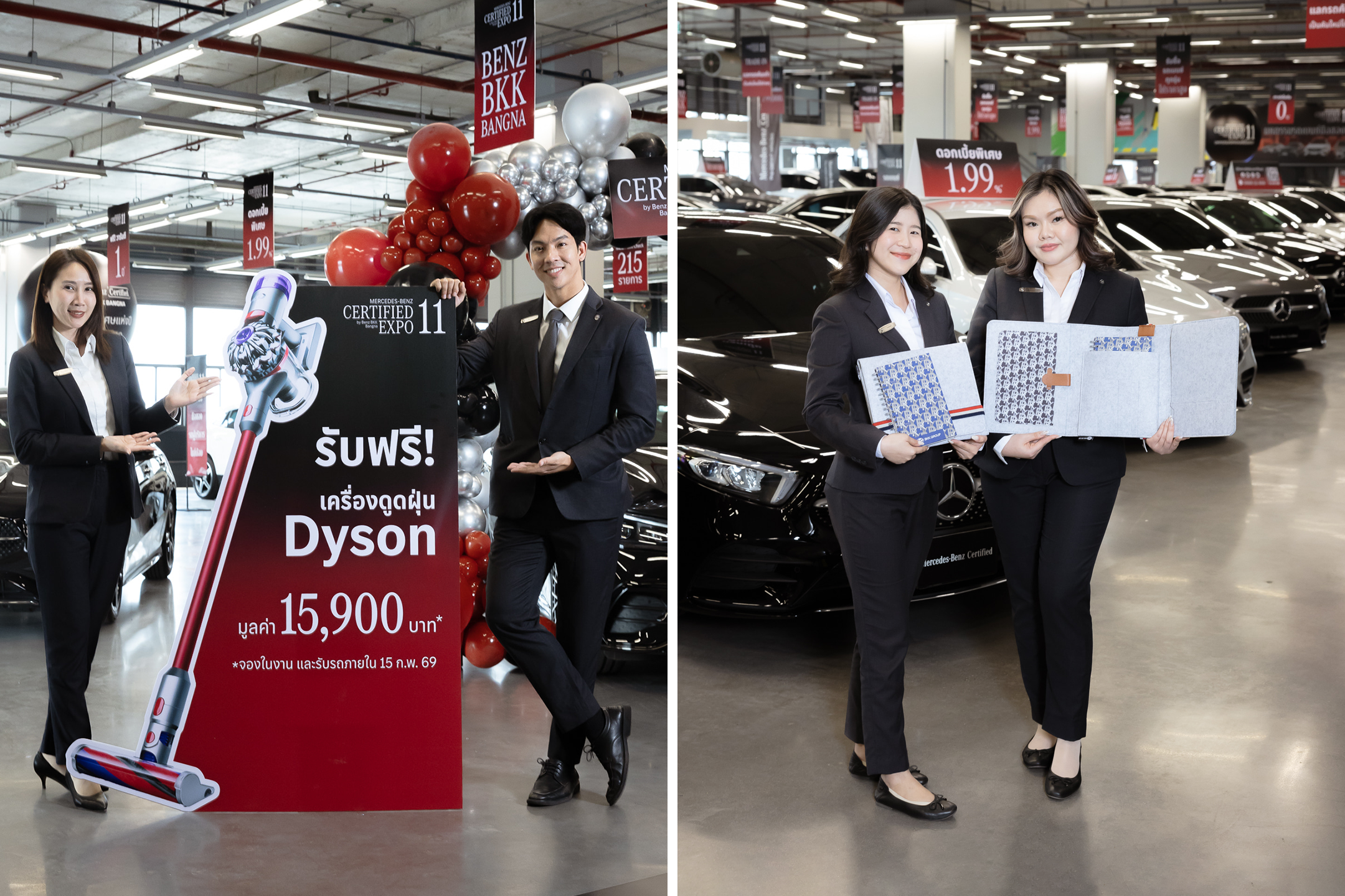 Benz BKK Bangna ยังมอบข้อเสนอพิเศษเฉพาะภายในงาน เพื่อให้ลูกค้าเป็นเจ้าของรถเบนซ์ได้ง่ายยิ่งขึ้น ด้วยราคาเริ่มต้นเพียง 799,000 บาท พร้อมดอกเบี้ยพิเศษ 1.99% และข้อเสนอ ดาวน์ 0%* รวมถึงสิทธิพิเศษสำหรับลูกค้าที่จองรถภายในงาน รับฟรี!! เครื่องดูดฝุ่น Dyson V8 Slim™ Fluffy มูลค่า 15,900 บาท* และผู้ที่ลงทะเบียนร่วมงานยังจะได้รับ BKK Journey Set ของที่ระลึกสุดเอ็กซ์คลูซีฟจาก Benz BKK Bangna อีกด้วย