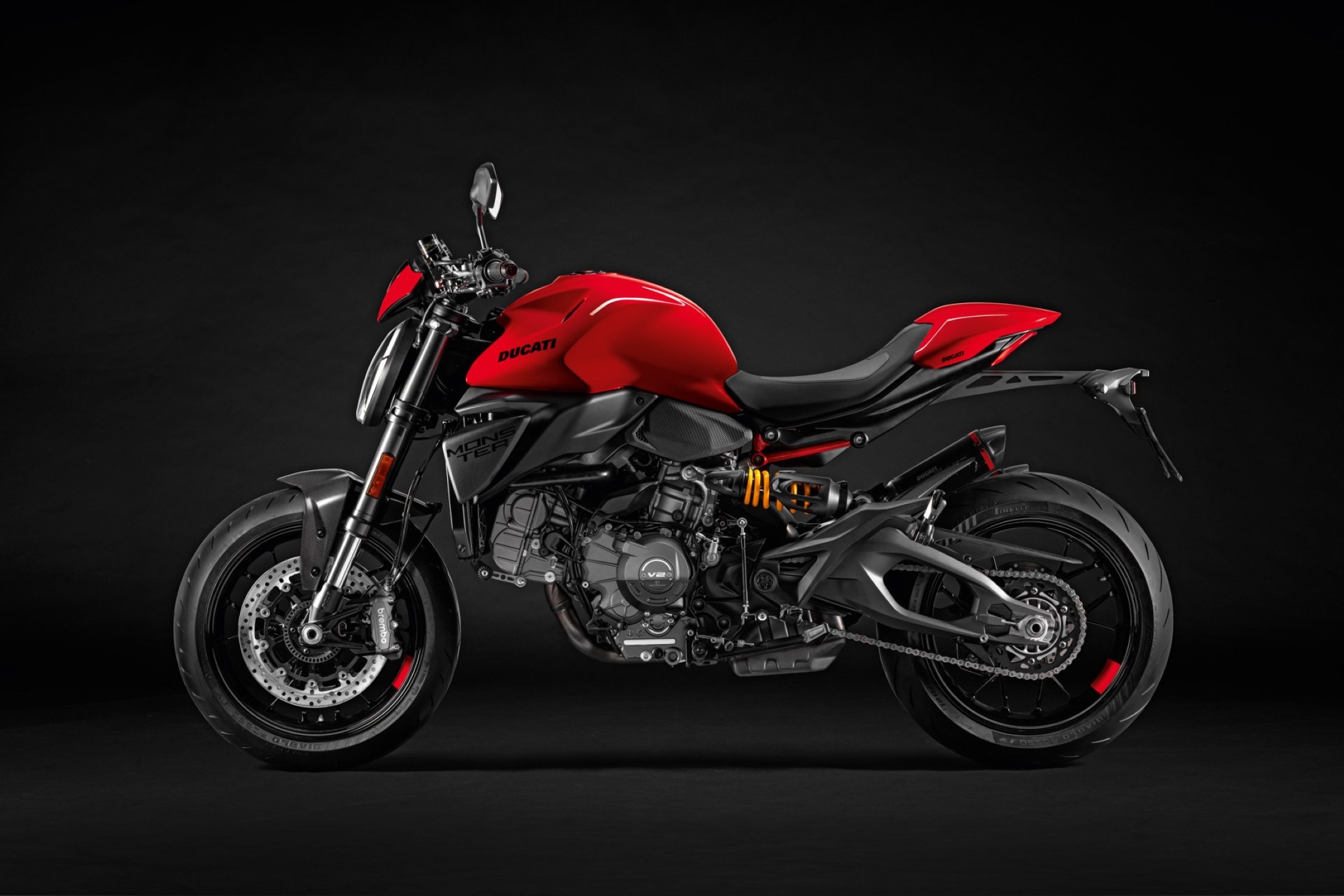 เครื่องยนต์ Ducati V2 รุ่นล่าสุด ถือเป็นหัวใจสำคัญ ที่ถูกออกแบบมาให้มีการกระจายน้ำหนักที่สมดุลมากขึ้น ลดแรงสั่นสะเทือน ซึ่งช่วยให้การขับขี่มีความนุ่มนวลและควบคุมได้ง่าย เครื่องยนต์รุ่นใหม่นี้มีน้ำหนักเบาลง 5.9 กิโลกรัม เมื่อเทียบกับ Testastretta รุ่นก่อนหน้า และมาพร้อมระบบวาล์วแปรผัน IVT (Intake Variable Timing) ที่ช่วยให้เครื่องยนต์สามารถผสานความนุ่มนวลในรอบต่ำ แรงดึงในรอบกลาง และ พละกำลังในรอบสูง โดยให้กำลังสูงสุด 111 แรงม้า ที่ 9,000 รอบ/นาที และให้แรงบิด 70% ของแรงบิดสูดสุดตั้งแต่ที่ 3,000 รอบ/นาที และยังคงแรงบิด 80% ของแรงบิดสูงสุดไว้ให้ใช้งานตั้งแต่ 4,000 – 10,000 รอบ/นาที นอกจากนี้ผู้ขับขี่ยังสามารถสนุกกับการขับขี่ได้อย่างเต็มที่ ลดความกังวลเรื่องค่าบำรุงรักษา เพราะเครื่องยนต์ V2 รุ่นล่าสุด สามารถยืดระยะเวลา Maintenance Service ได้นานขึ้น โดยมีระยะการตรวจตั้งวาล์วที่ 45,000 กิโลเมตร ซึ่งถือเป็น 1 ในมาตรฐานที่ดีที่สุดในกลุ่มรถจักรยานยนต์ระดับเดียวกัน