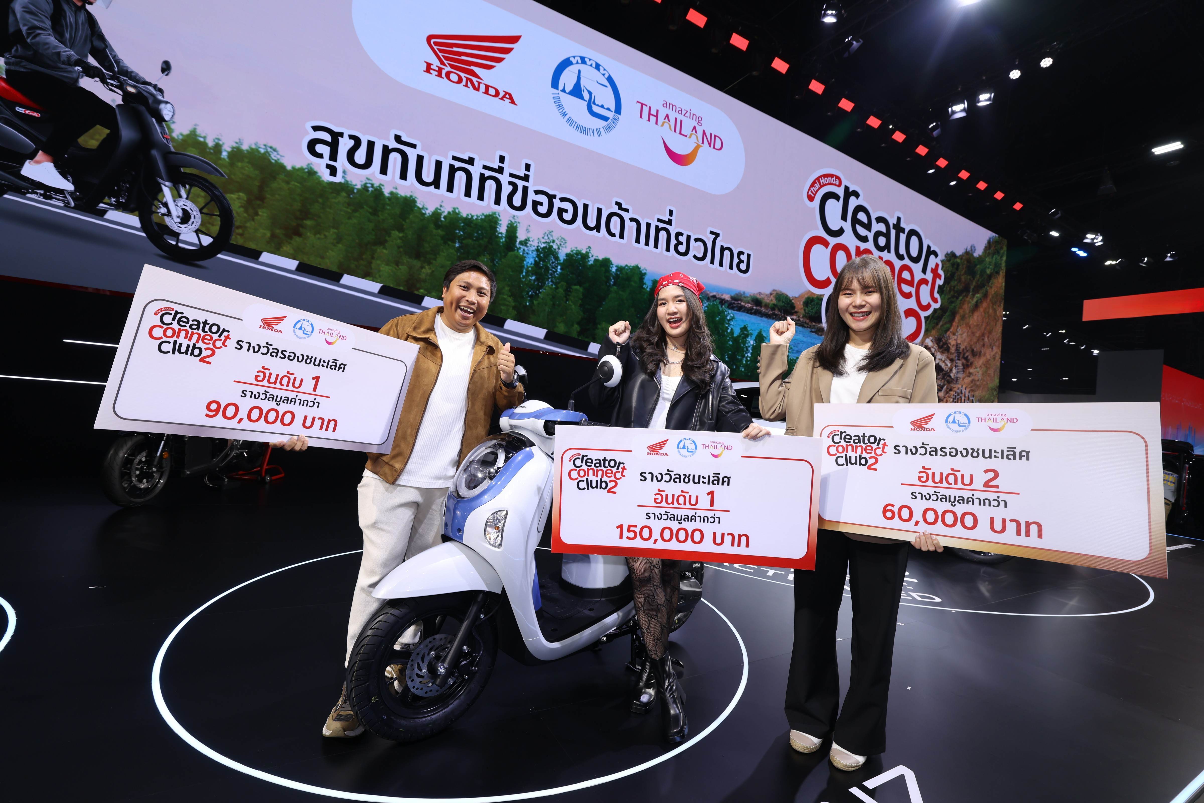ปิดฉากลงอย่างสมบูรณ์แบบ สำหรับแคมเปญ “Thai Honda Creator Connect Club ปีที่ 2: สุขทันทีที่ขี่ฮอนด้าเที่ยวไทย” โครงการที่ไทยฮอนด้าร่วมกับการท่องเที่ยวแห่งประเทศไทย (ททท.) เปิดพื้นที่ให้ครีเอเตอร์ไทยทั่วประเทศได้ร่วมถ่ายทอดเสน่ห์การท่องเที่ยวไทยผ่านมุมมองสร้างสรรค์ พร้อมยกระดับทักษะสู่การเป็นครีเอเตอร์มืออาชีพ โดยมีผู้ชนะทั้ง 3 รางวัล และผู้ได้รับรางวัลชมเชยอีก 6 รางวัล จากการแข่งขันกว่า 400 ผลงานที่ส่งเข้าร่วมโครงการ โดยผู้ชนะอันดับที่ 1 คว้ารางวัลรถจักรยานยนต์ฮอนด้า All New Honda SCOOPY รุ่น Club 12 พร้อม Gift Voucher ท่องเที่ยวไทย พร้อมโอกาสต่อยอดสู่การเป็นครีเอเตอร์มืออาชีพในอนาคต