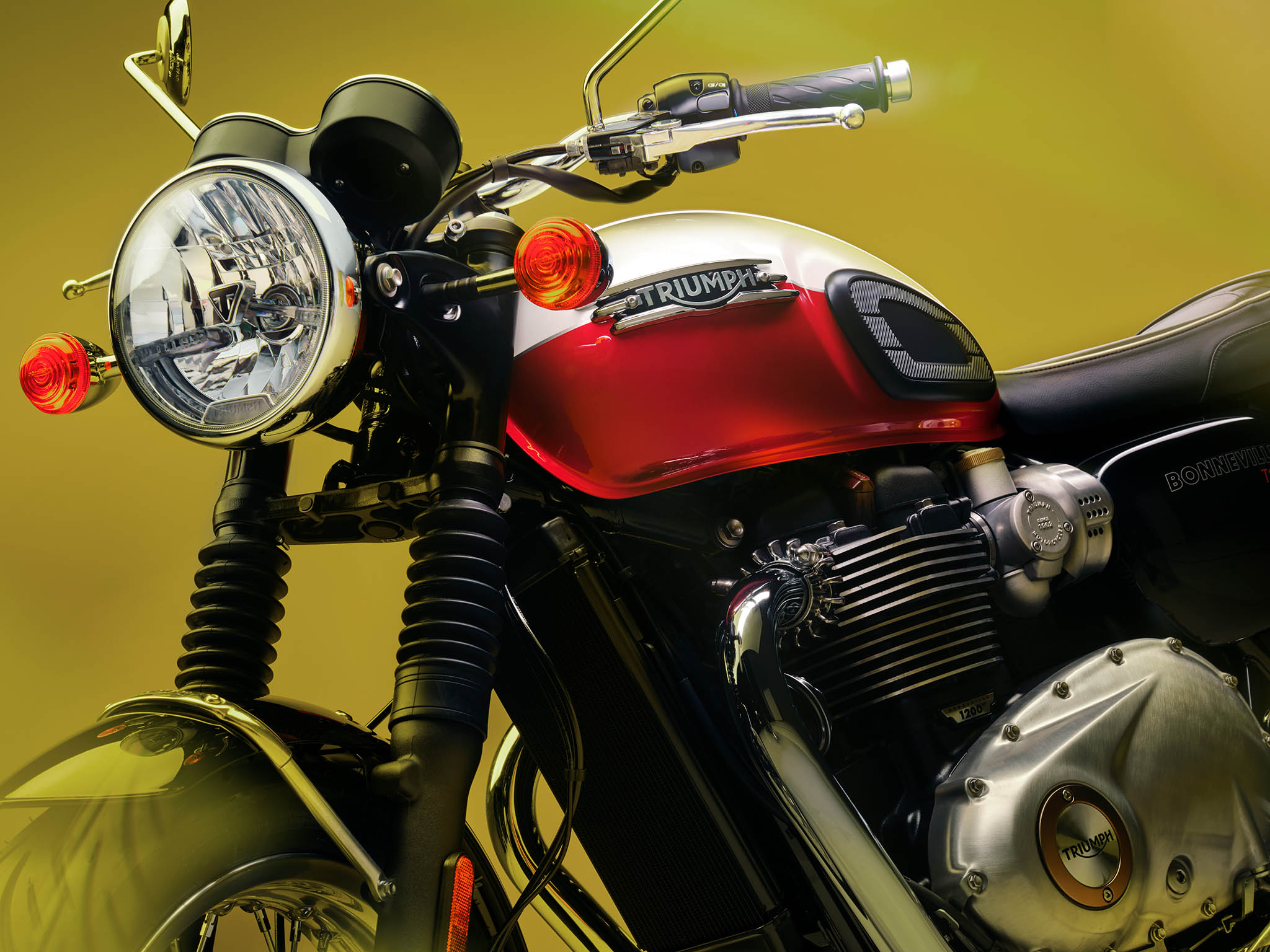 หัวใจสำคัญของ Bonneville T120 และ BonnevilleT120 Black คือ เครื่องยนต์ Bonneville สูบคู่ขนาด 1200 ซีซีรุ่นปรับปรุงจะมีน้ำหนักเบาลงและตอบสนองได้ไวขึ้น ยังส่งมอบแรงบิดมหาศาล ในรอบเครื่องยนต์ต่ำ ทำให้คุณสัมผัสได้ถึงพละกำลังที่พร้อมตอบสนองในทุกจังหวะการบิดคันเร่ง เพิ่มขึ้นอย่างนุ่มนวลจนถึงค่าสูงสุด 105Nm ที่รอบเครื่องเพียงแค่ 3,500 rpm และยาวไปจนถึงกำลังสูงสุด 80PS ที่ 6,550rpm เสียงกระหึ่มเร้าใจอันเป็นเอกลักษณ์ พร้อมด้วยจังหวะการจุดระเบิด 270 องศา มอบฟีลลิ่งการขับขี่ที่แตกต่างและเป็นเอกลักษณ์เฉพาะตัว ซึ่งเป็นที่หลงใหลของเหล่าไบค์เกอร์ทั่วโลก